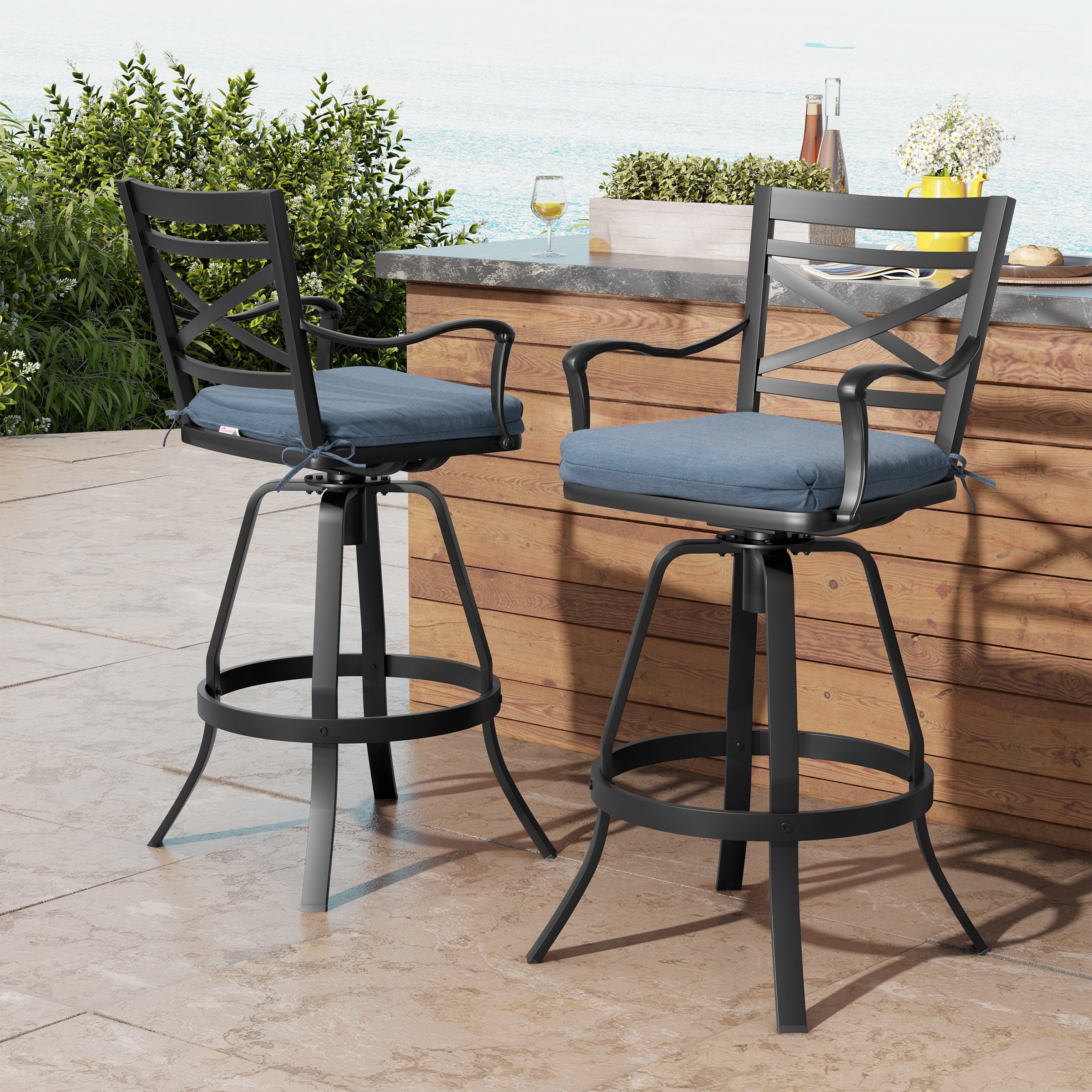 Outdoor Aluminum Patio Swivel Bar Stool Bar Chair with Sunbrella Cushion
