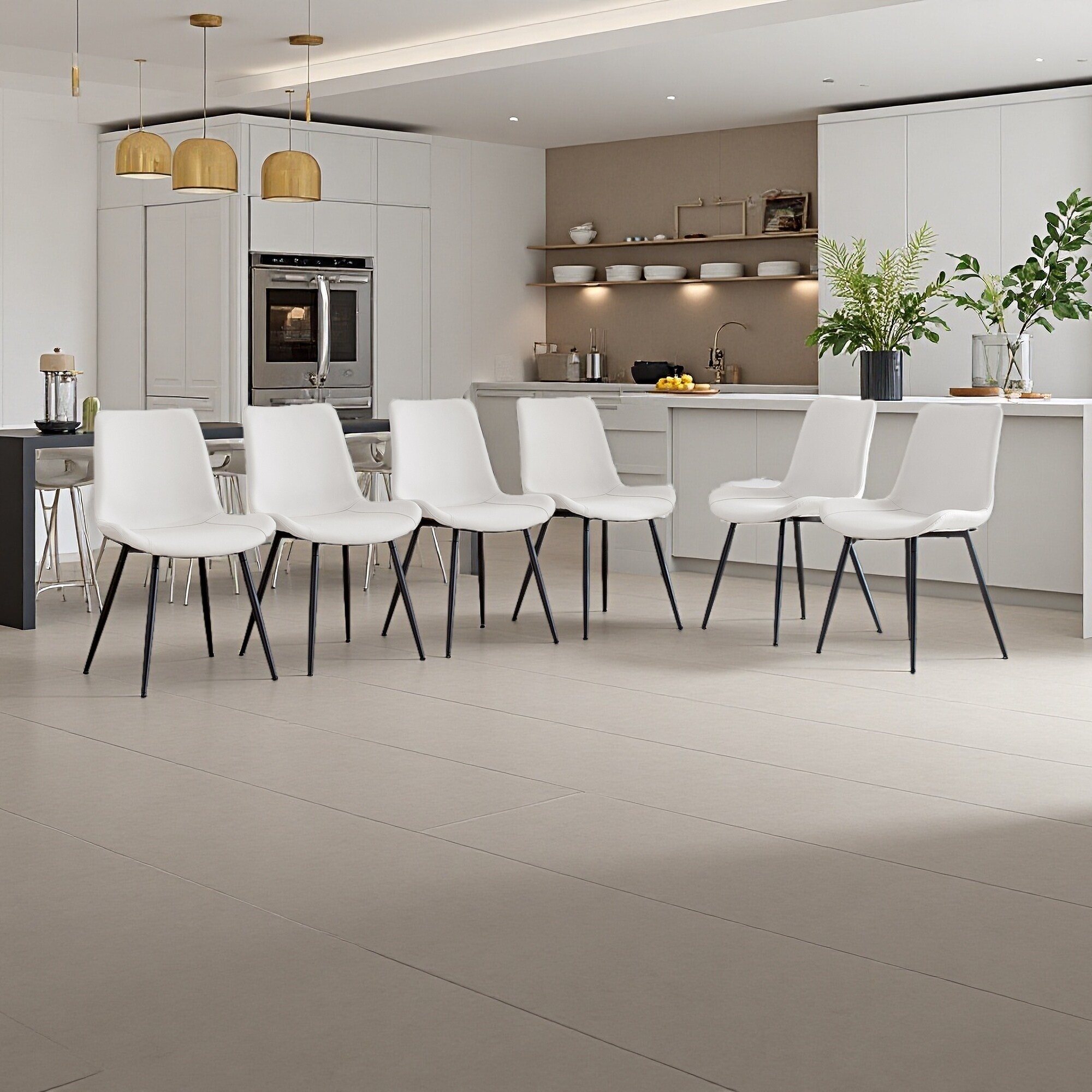 32.6"H Set of 6 Artificial Leather Dining Chairs with Curved Widened Cushion & Metal Legs - Comfortable Backrest, Anti-Slip Pads