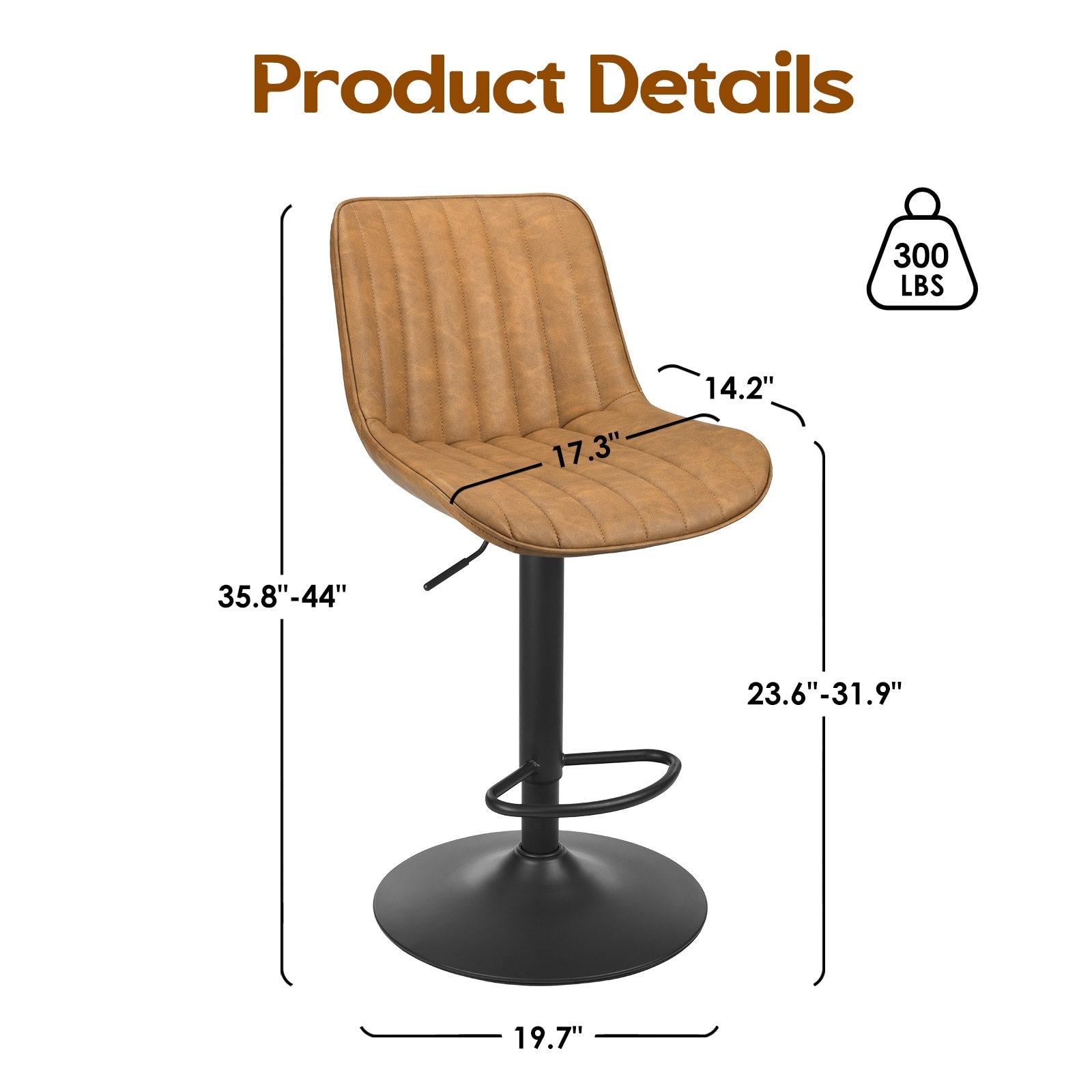 Bar Stools Set of 2, Swivel Adjustable Barstools, Bar Height Stools with Back Support, PU Leather Counter Height Bar Chairs for