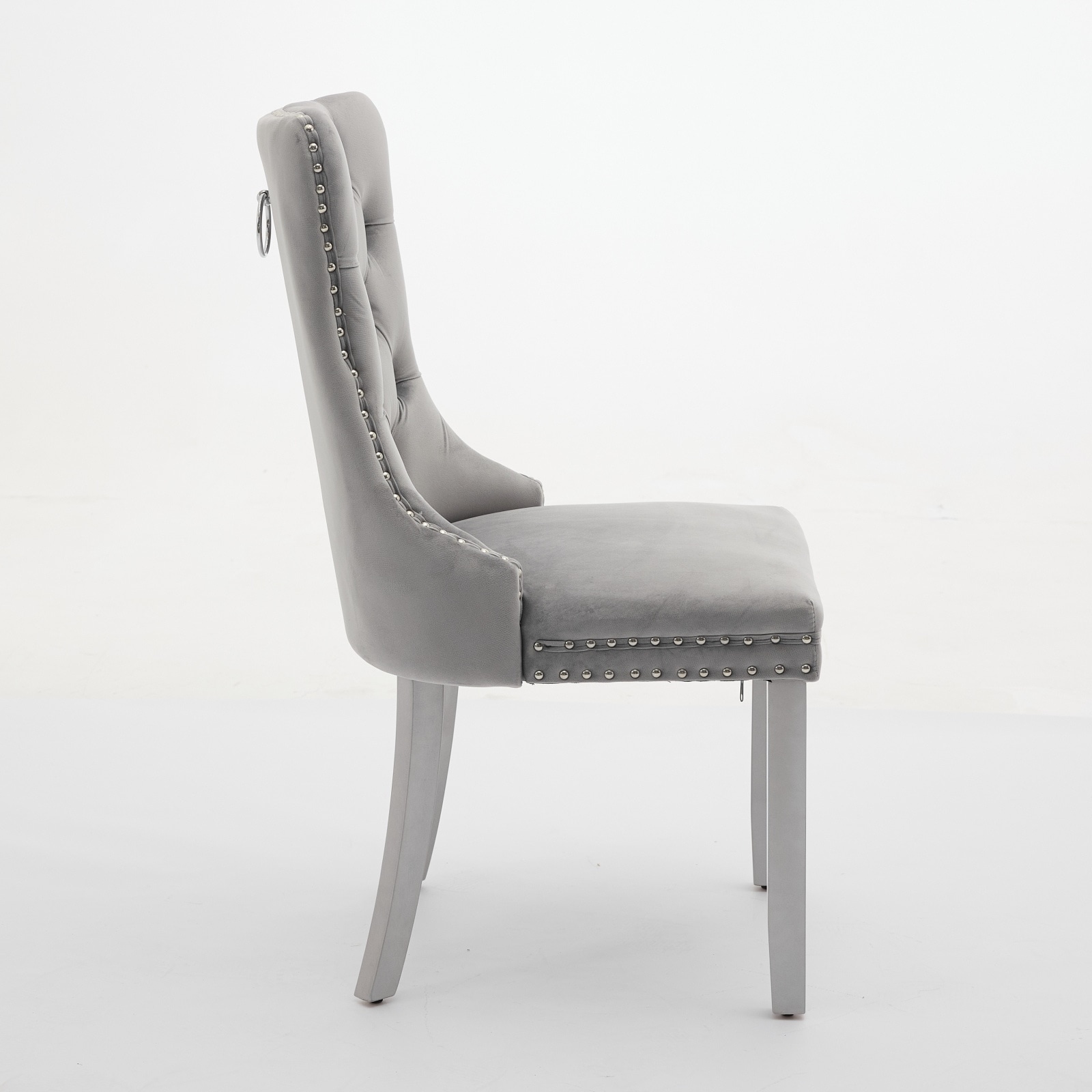 Velvet Upholstered Dining Chair with Wood Legs Nailhead Trim 2-Pcs