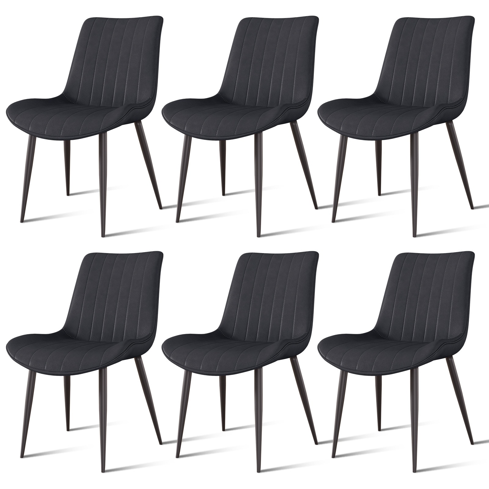 Black PU Leather Dining Chair with Metal Legs, Wave Pattern Upholstered Armless Chair Set of 6 for Kitchen