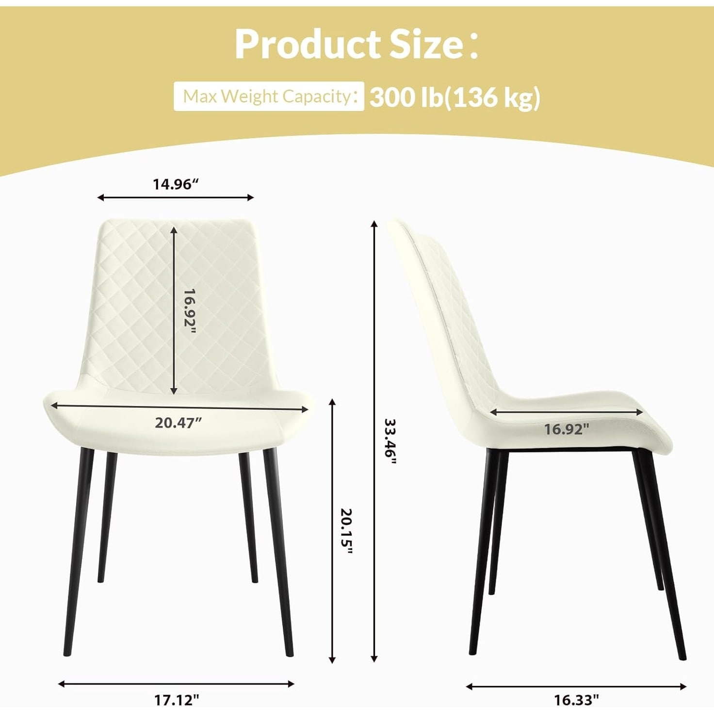 Faux Leather Dining Chairs Set of 4,Modern Kitchen & Dining Room High Back Chairs Metal Legs