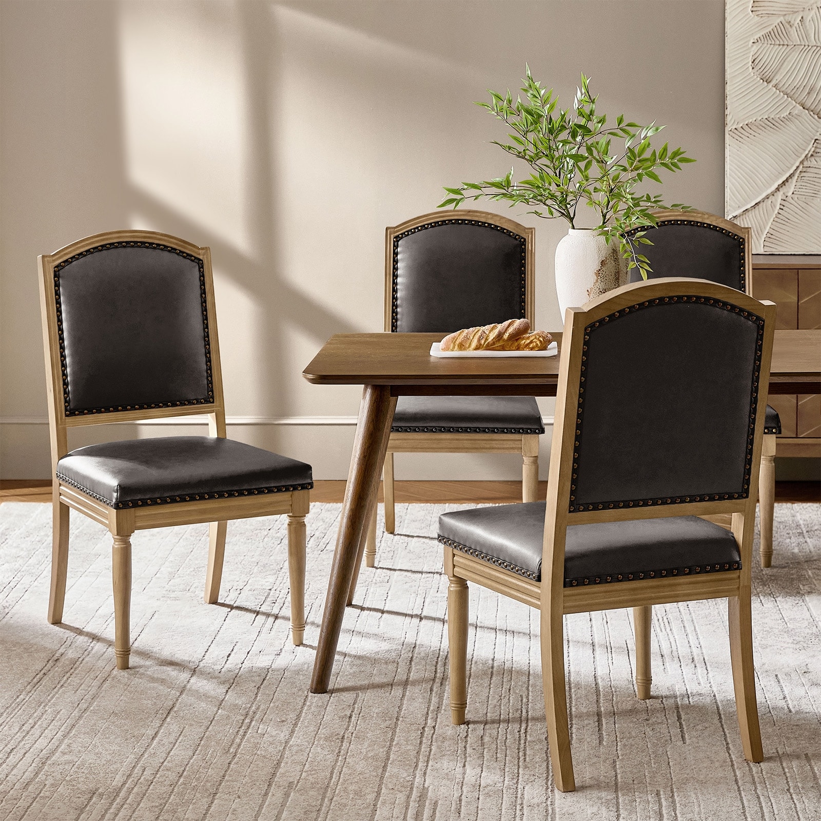 Quennel Traditional Faux Leather Solid Wood Dining Chair Set of 2 By HULALA HOME