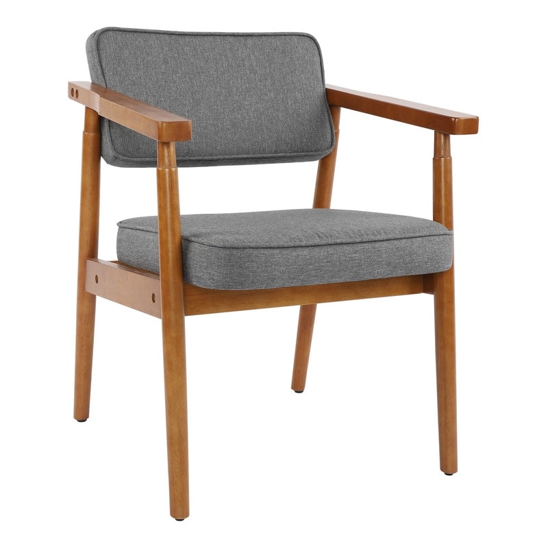 Walnut Faux Leather or Linen-Like Fabric Upholstered Dining Chair - Padded Armchair with Solid Wood Frame & Open Back
