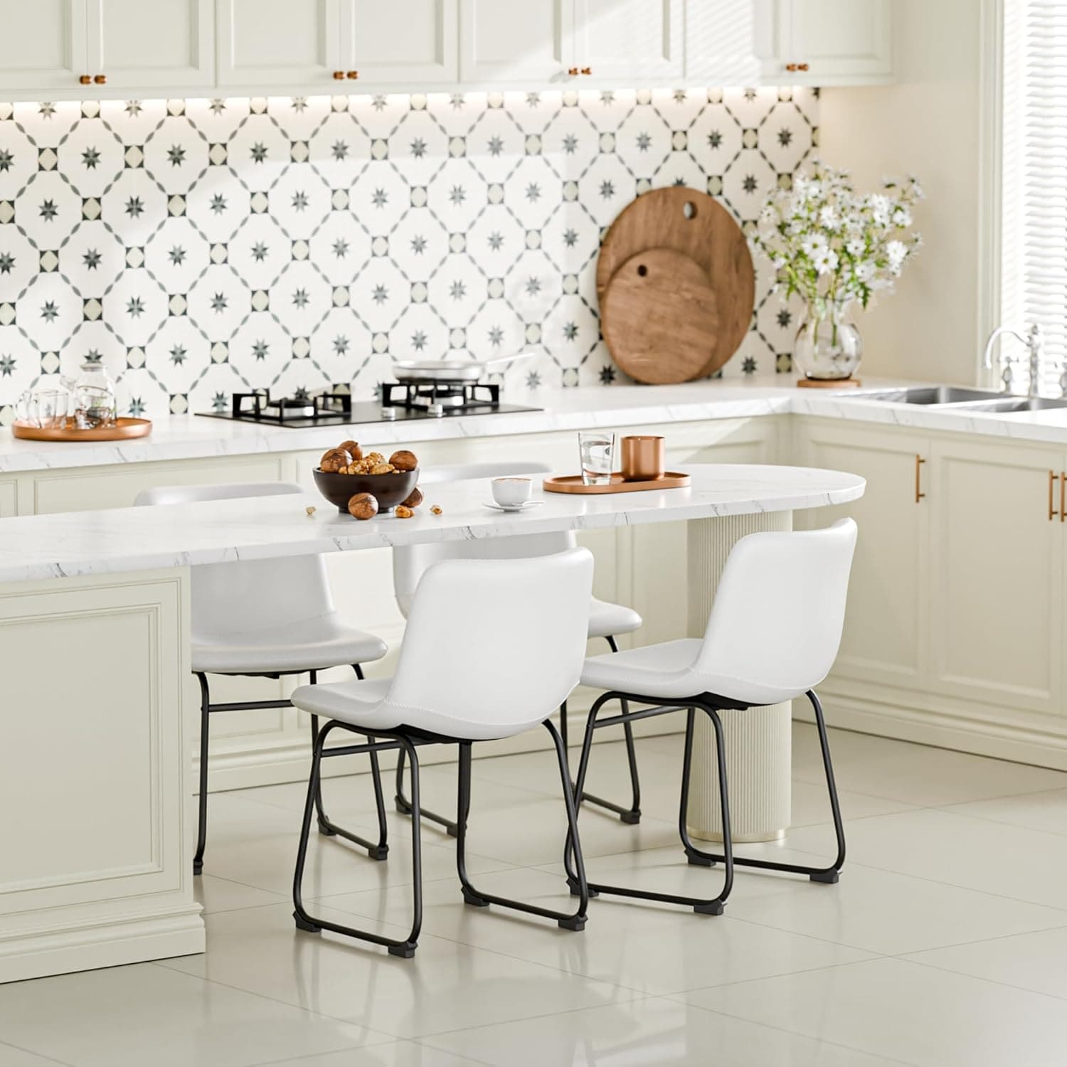 Set of 4 Faux Leather Dining Chairs with Metal Legs, Ergonomic Design, Sturdy Frame, Non-slip Feet