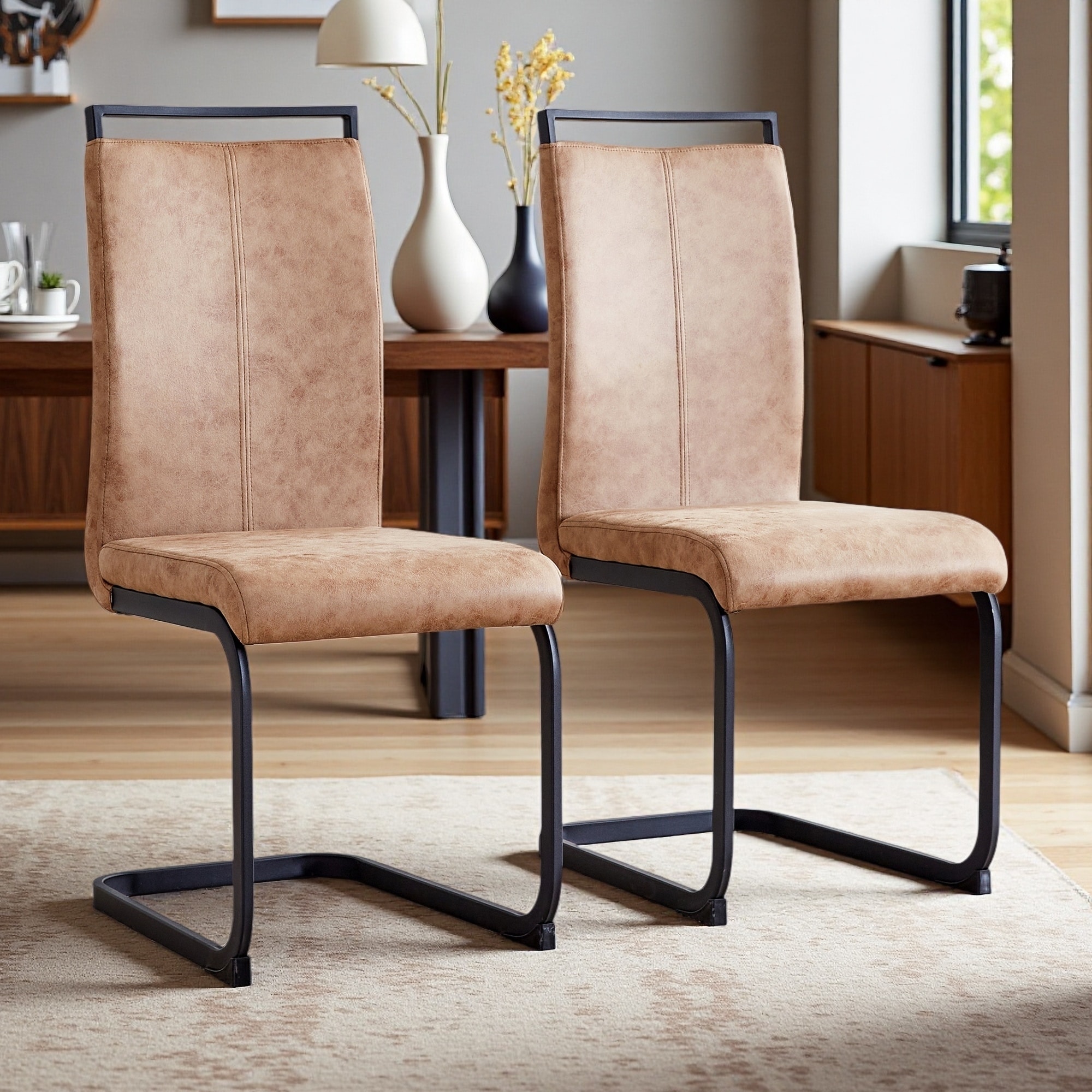 39"H Set of 2 Tech Cloth Upholstered Dining Chairs with C-Shaped Metal Legs