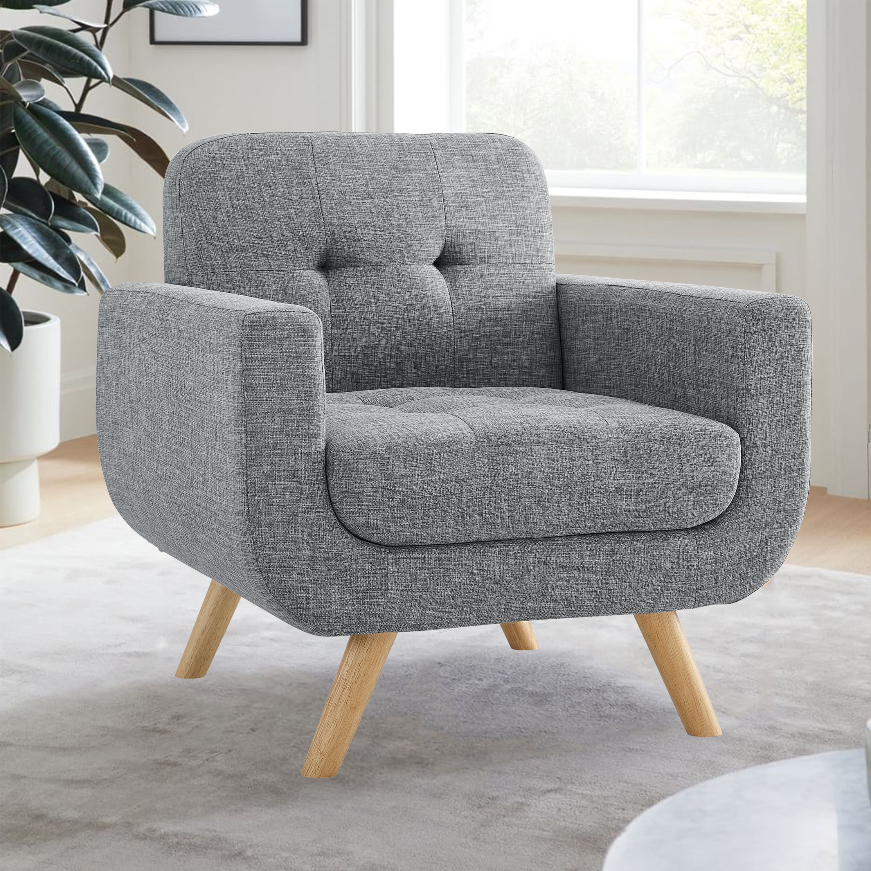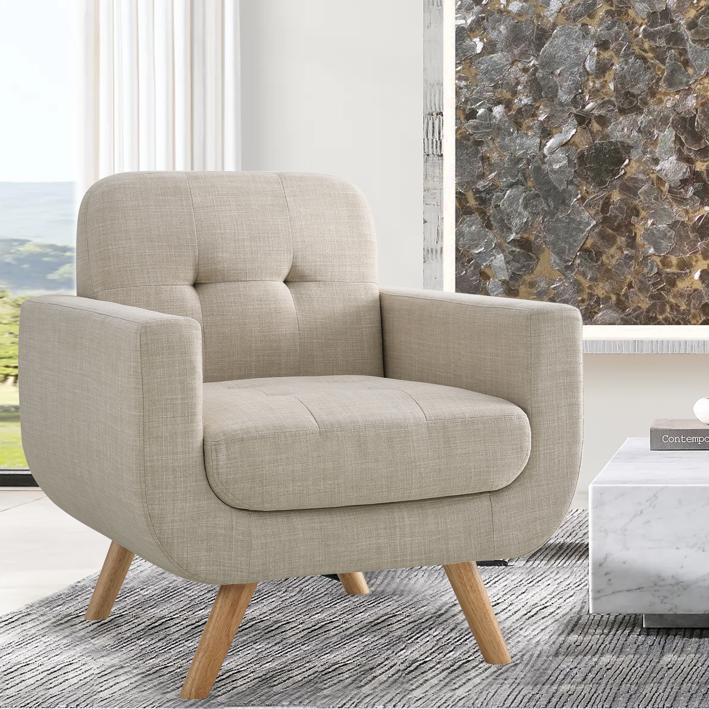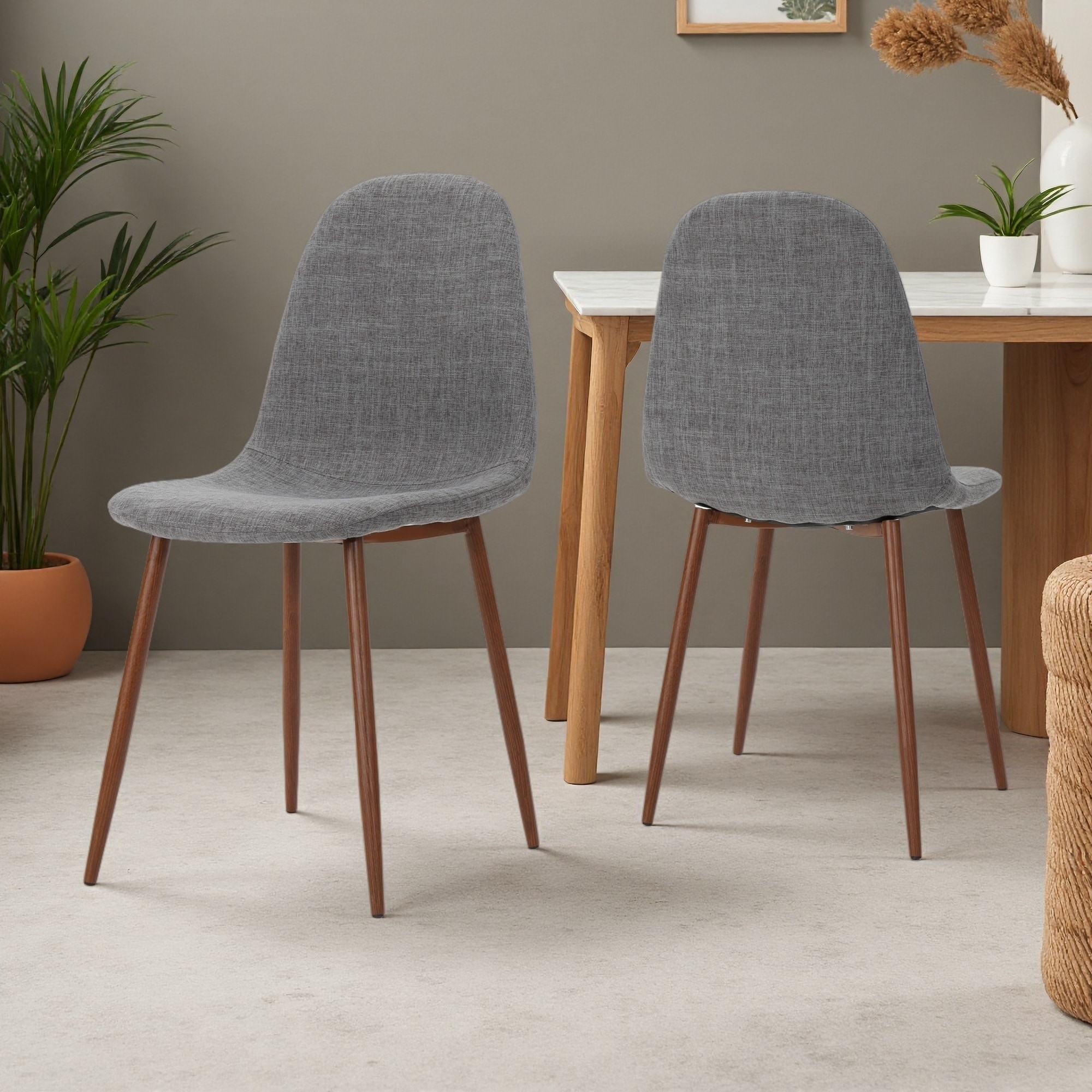 31.2"H Set of 2 Upholstered Mid-Century Dining Chairs with Rubberwood Frame