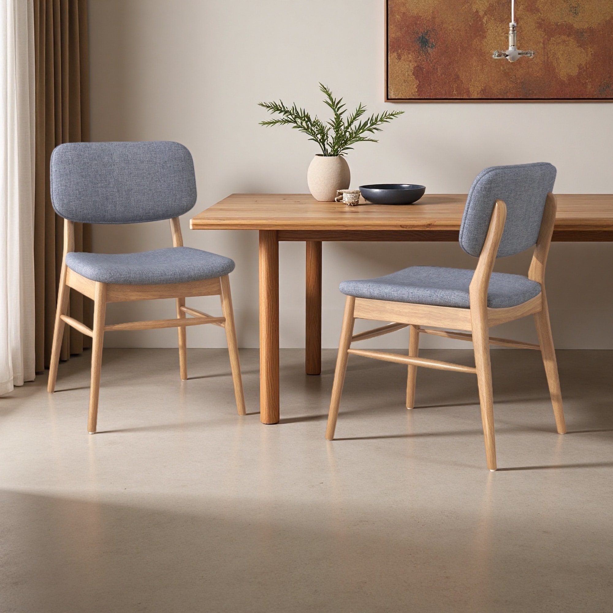 Set of 2 Retro Rubberwood Chairs with Ergonomic Back & Plush Cushions
