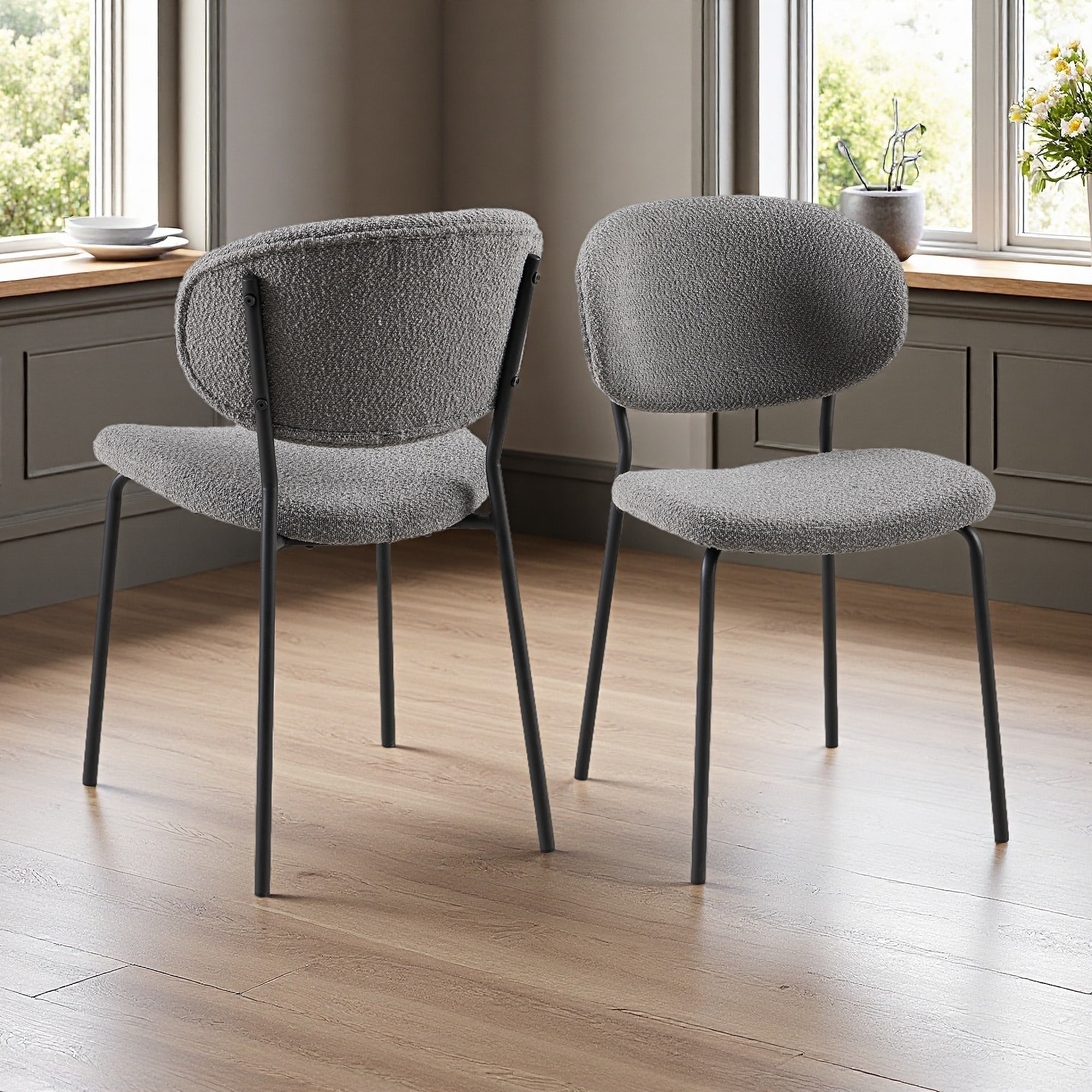 33"H Set of 2 Boucle Dining Chairs with Curved Back & Metal Legs