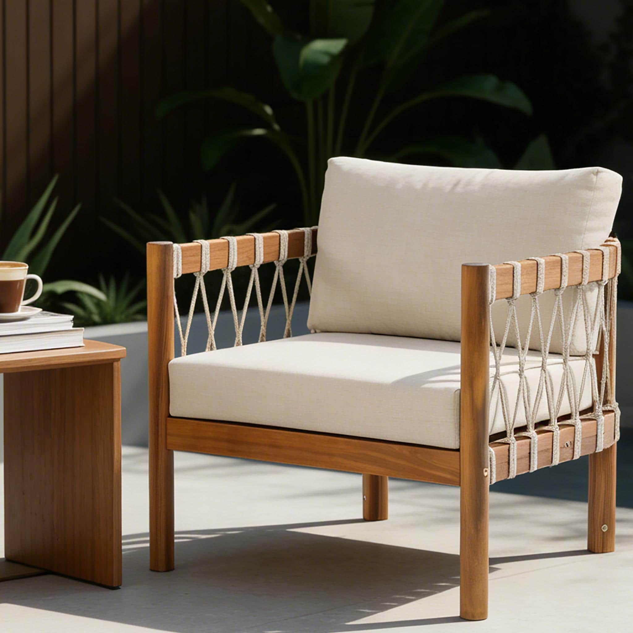 Christopher Knight Home - Coastal Haven Outdoor Chair Acacia Wood with Beige Cushions