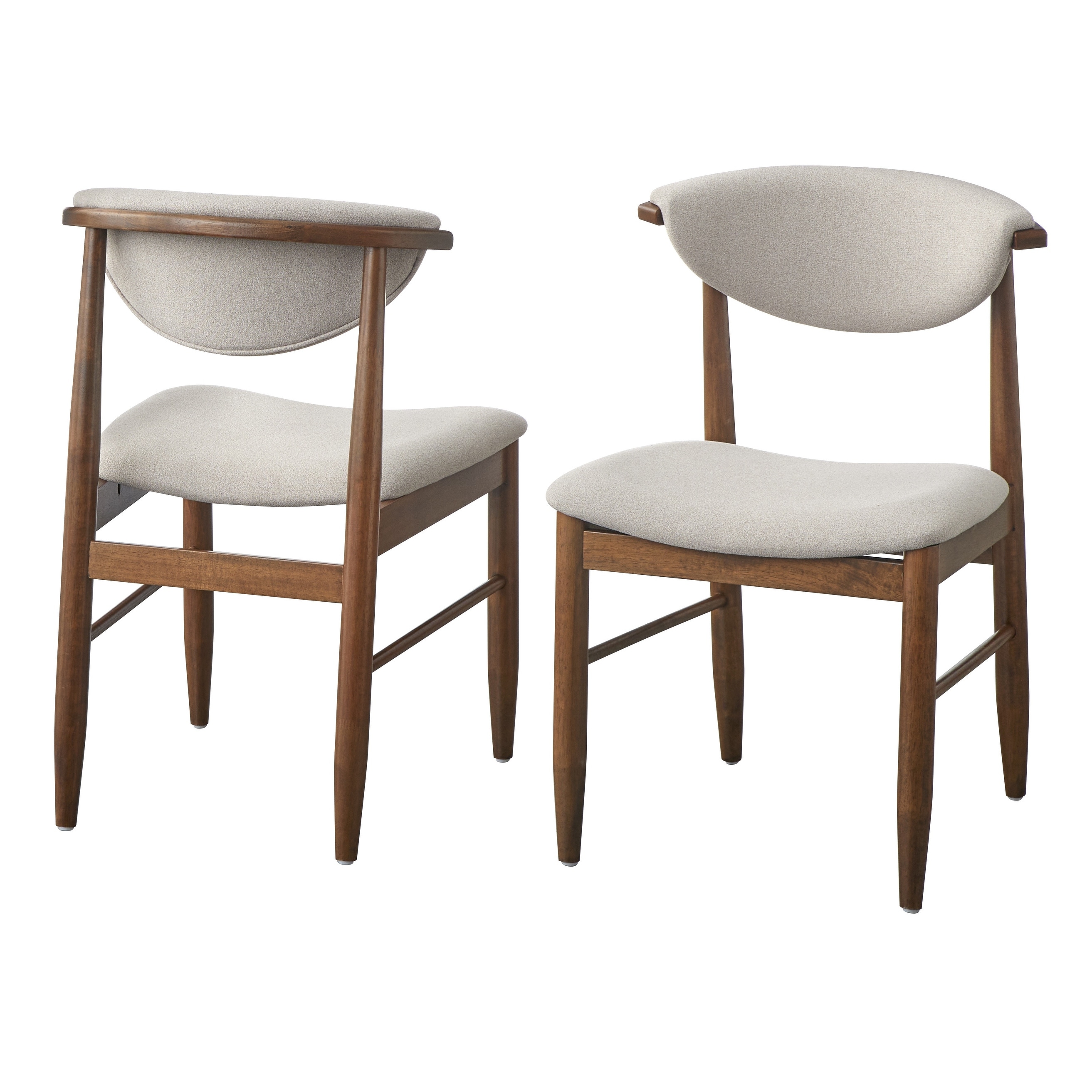 Side Dining Chair Set of 2, Beige Linen, Scrolled Coffee Brown Wood