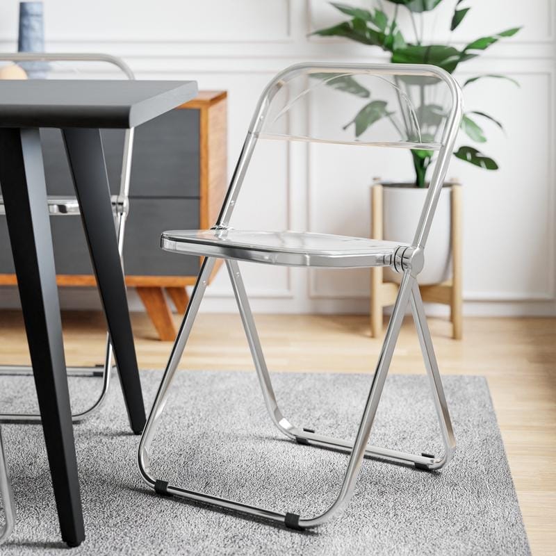 Lawrence Modern Foldable Acrylic Folding Chair with Accent Chrome Frame and Transparent Design for Home Living or Dining Room
