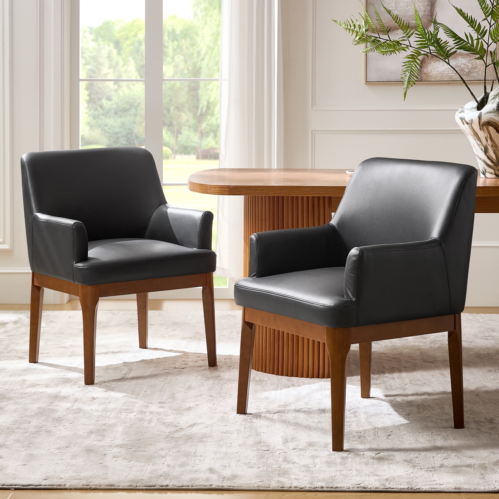 Klyne Leather Dining Chair with Poplar Wood Frame - Mid-Century Wooden Accent Chair with Swivel Base Set of 2
