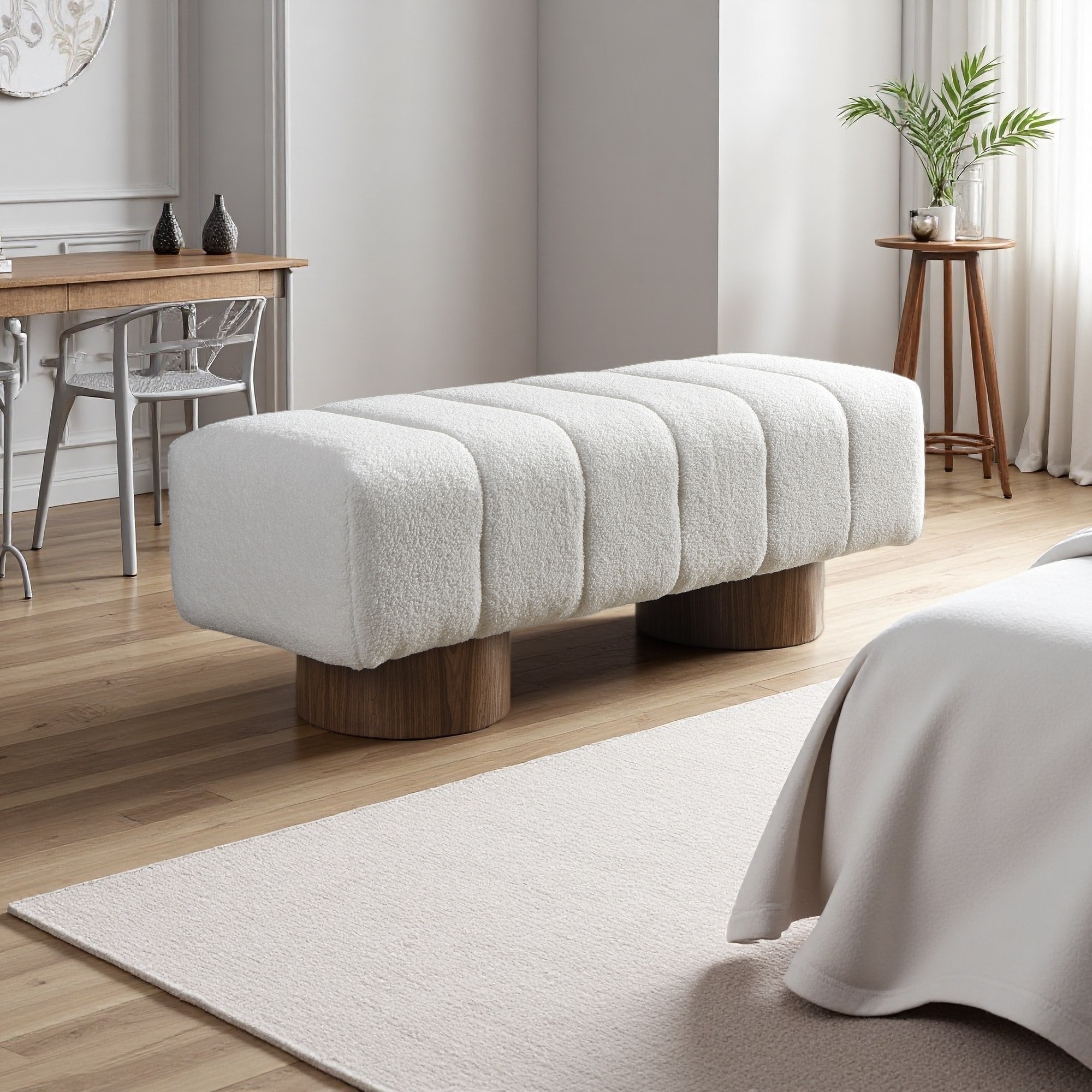 50"L Chenille Upholstered Bench with Wood Legs, No Assembly Needed, Multi-Functional Dining/Bedroom/Entryway Ottoman