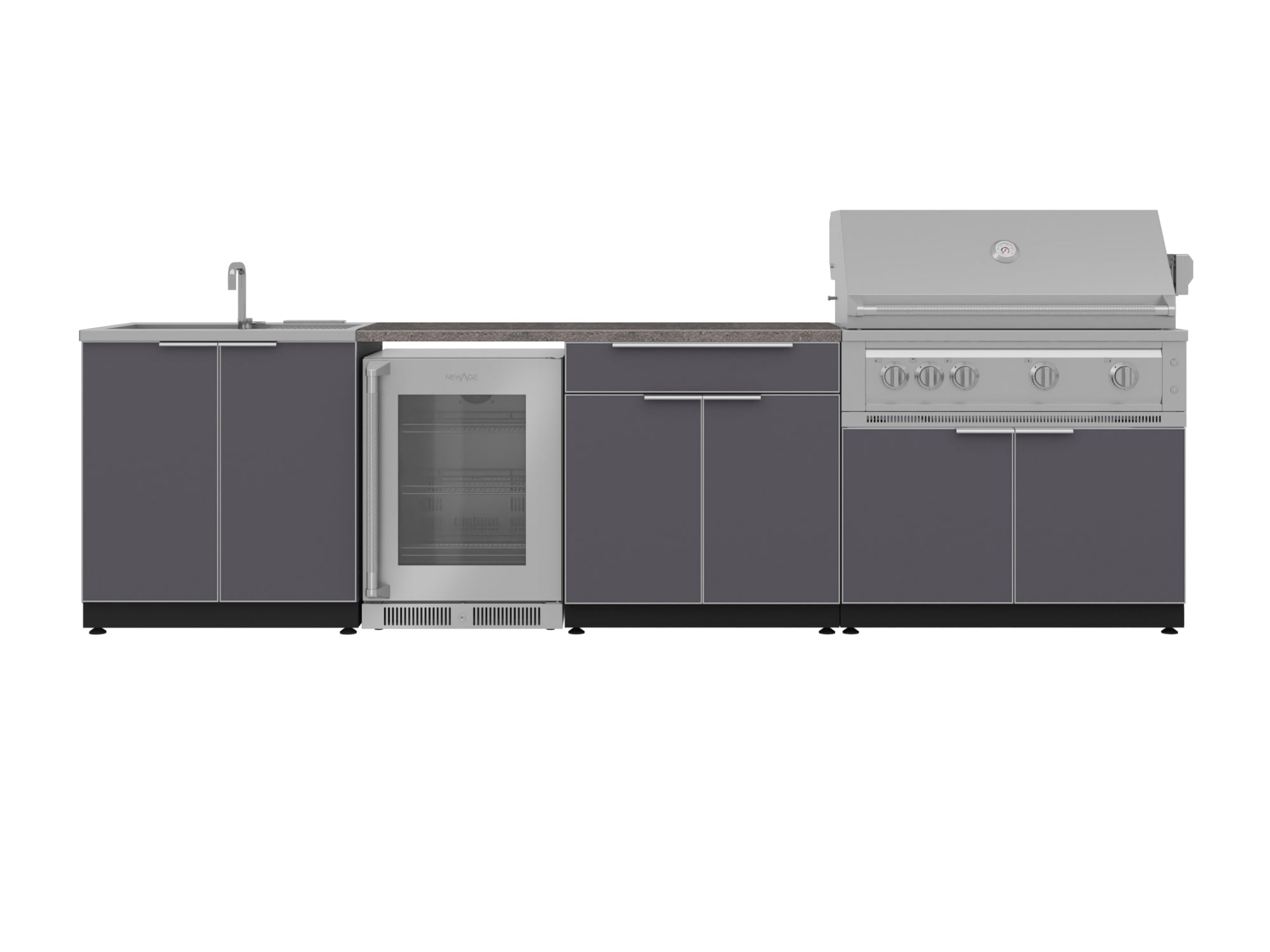 NewAge Outdoor Kitchens Aluminum 5-Piece Cabinet Set with Bar, Grill, Sink Cabinet, Performance Grill, and Countertop