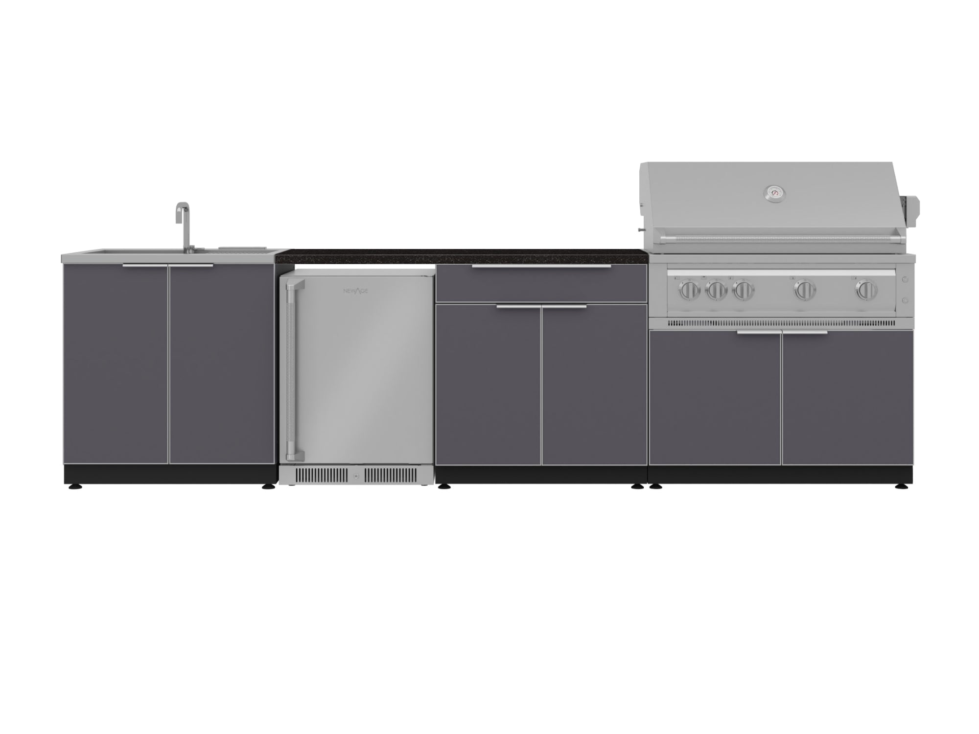 NewAge Outdoor Kitchens Aluminum 5-Piece Cabinet Set with Bar, Grill, Sink Cabinet, Performance Grill, and Countertop