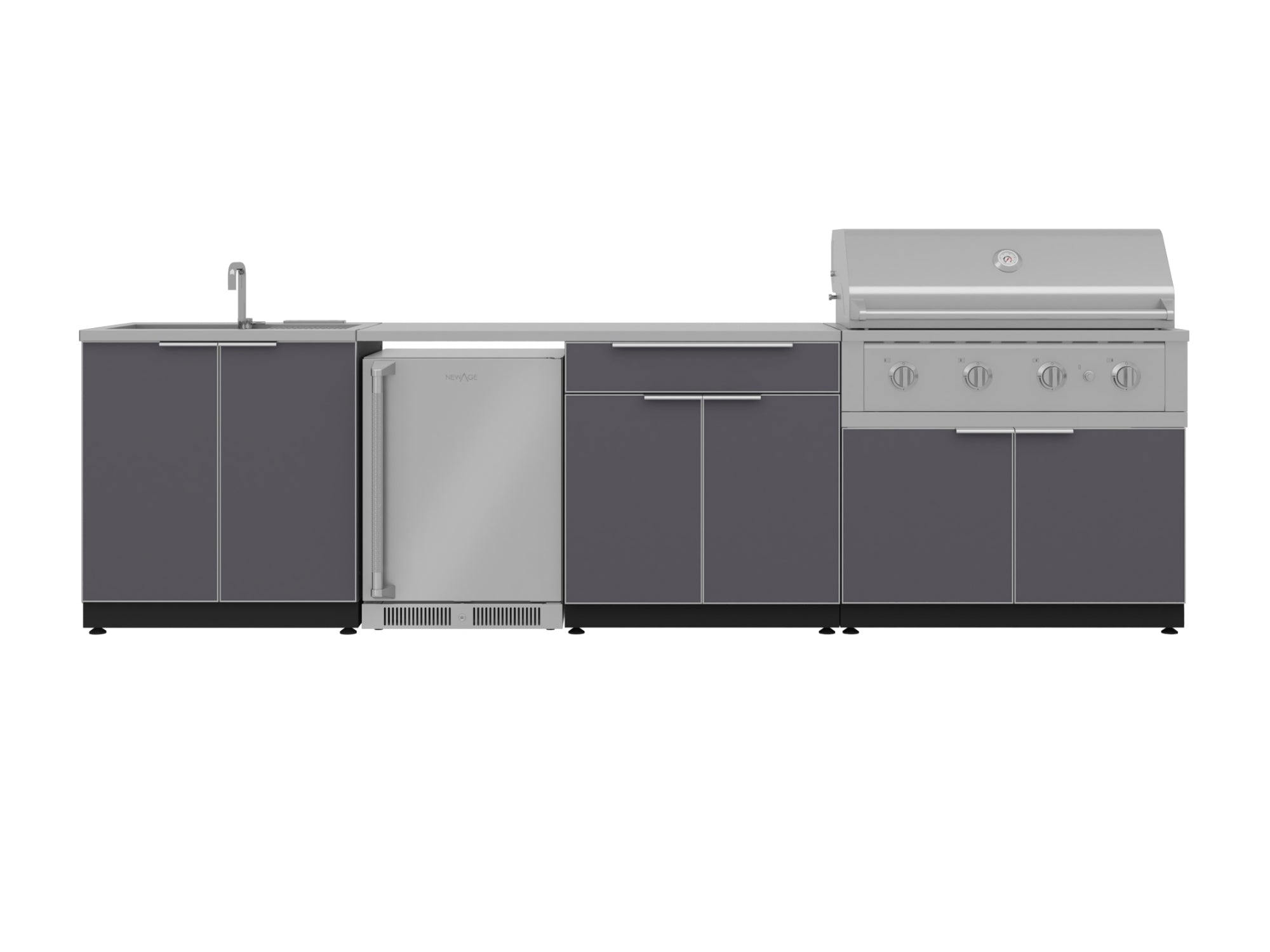 NewAge Outdoor Kitchens Stainless Steel 4-Piece Cabinet Set with Sink, Bar, Grill Cabinet and Fridge