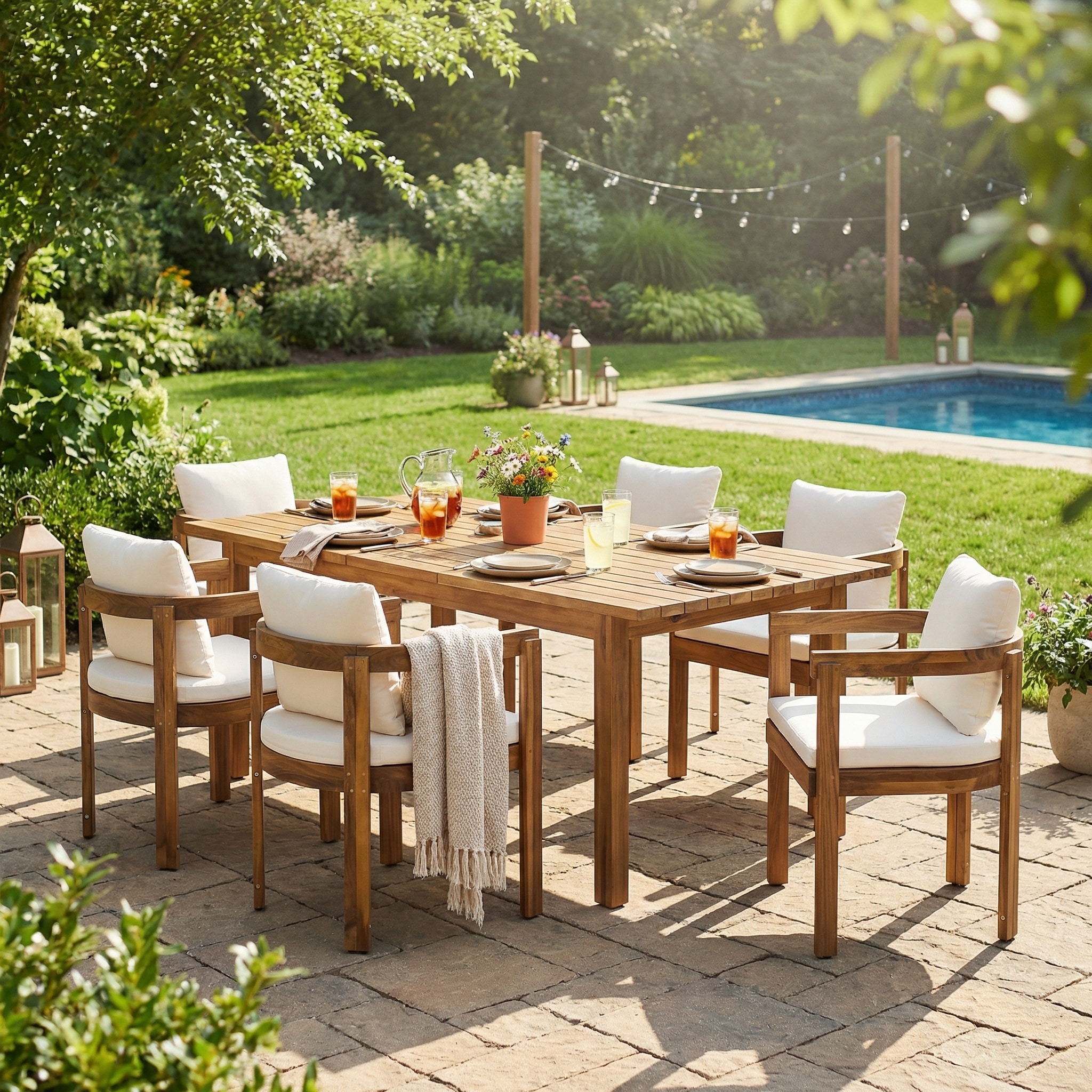 Christopher Knight Home - Farmhouse 7-Piece Outdoor Patio Dining Set with Expandable Acacia Wood Table and Cushioned Armchairs