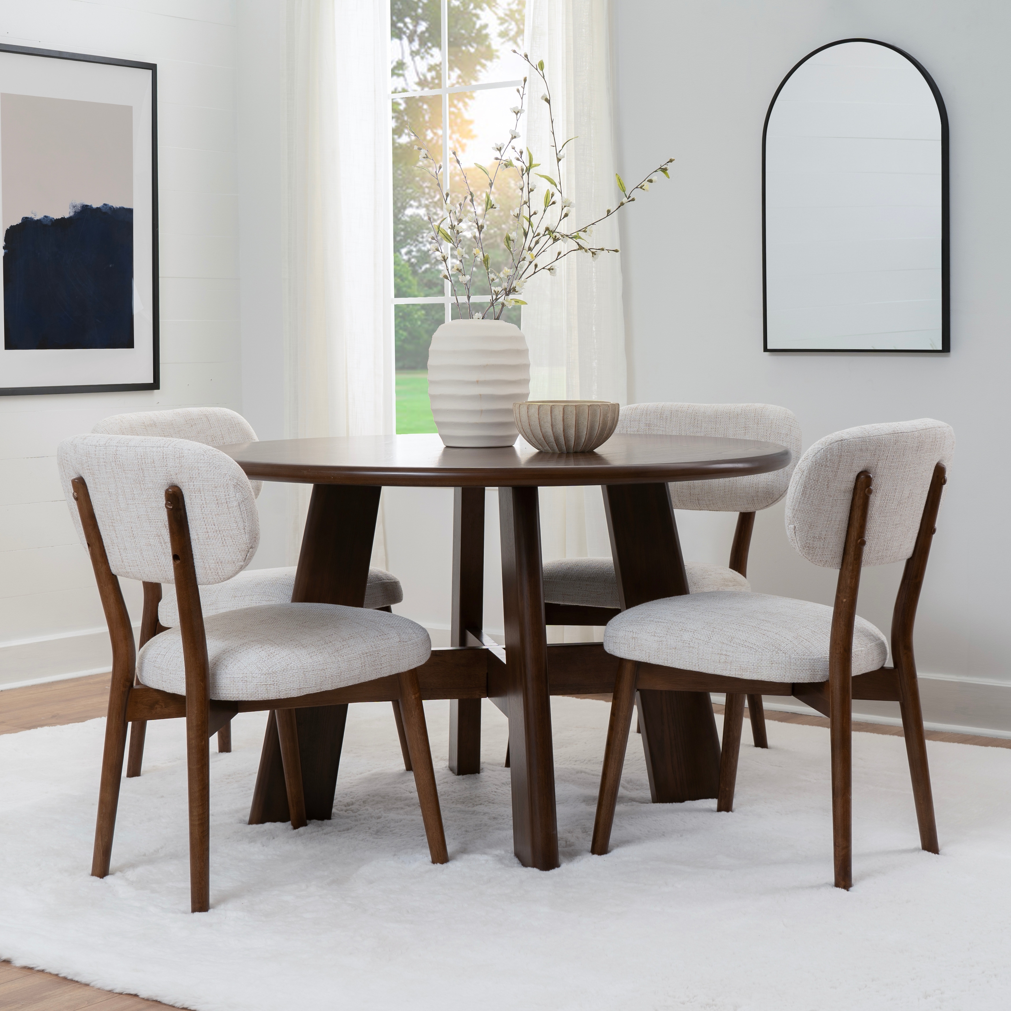 5-Piece Linen White Finish Solid Wood Top - Dining Room Set - Seats 4