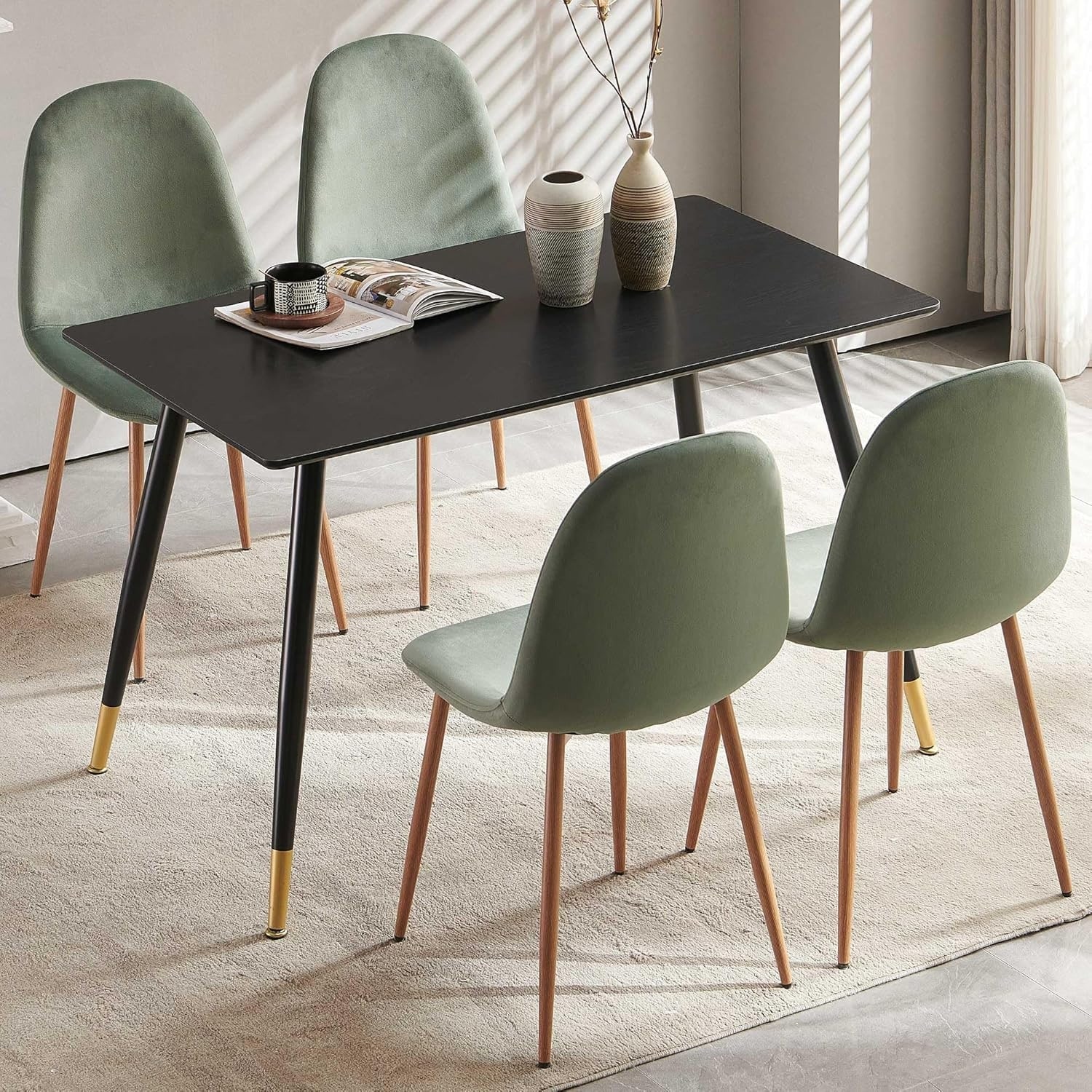 4-Piece Modern Dining Set with Velvet Chairs and 47-inch Rectangular Table