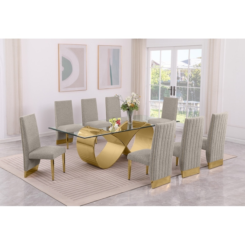 Best Quality 9pc Dining Set w/ Boucle Fabric