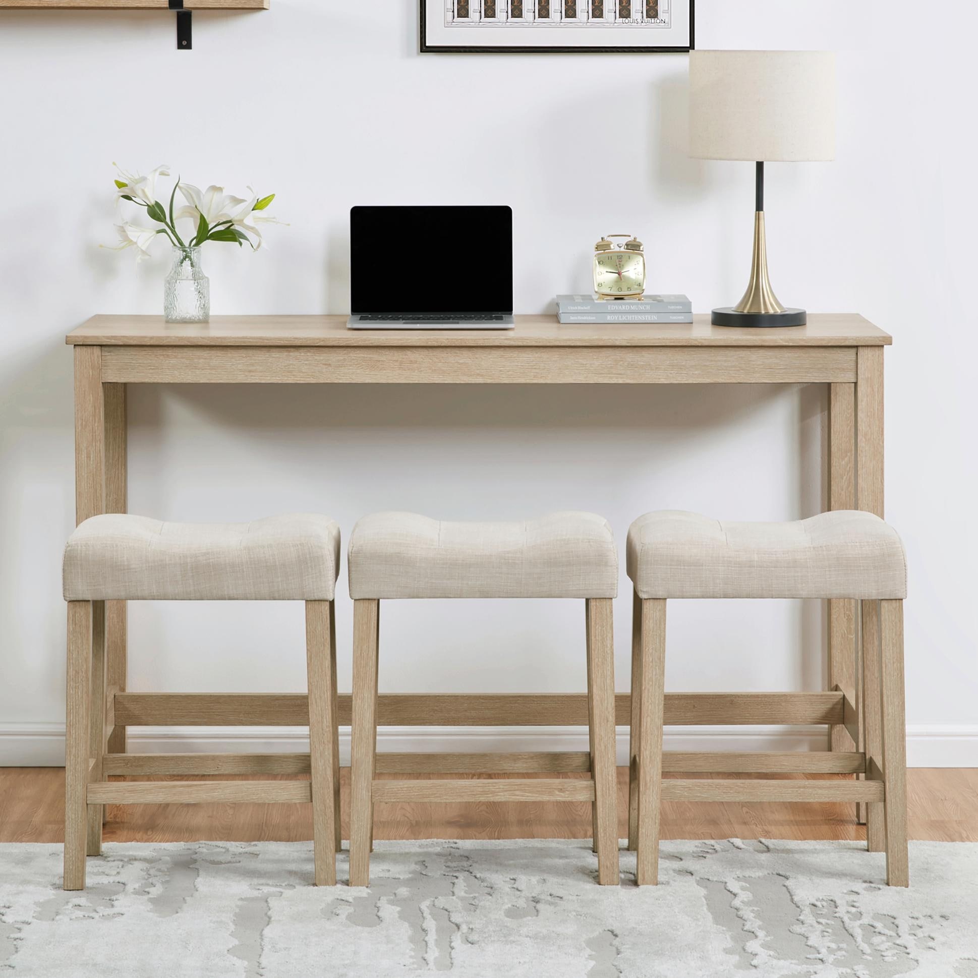 Set of 5 Antique 30" x 60" Counter Height Dining Set with Built-in Shelves, Fabric Upholstered Stools with Nailhead Trim