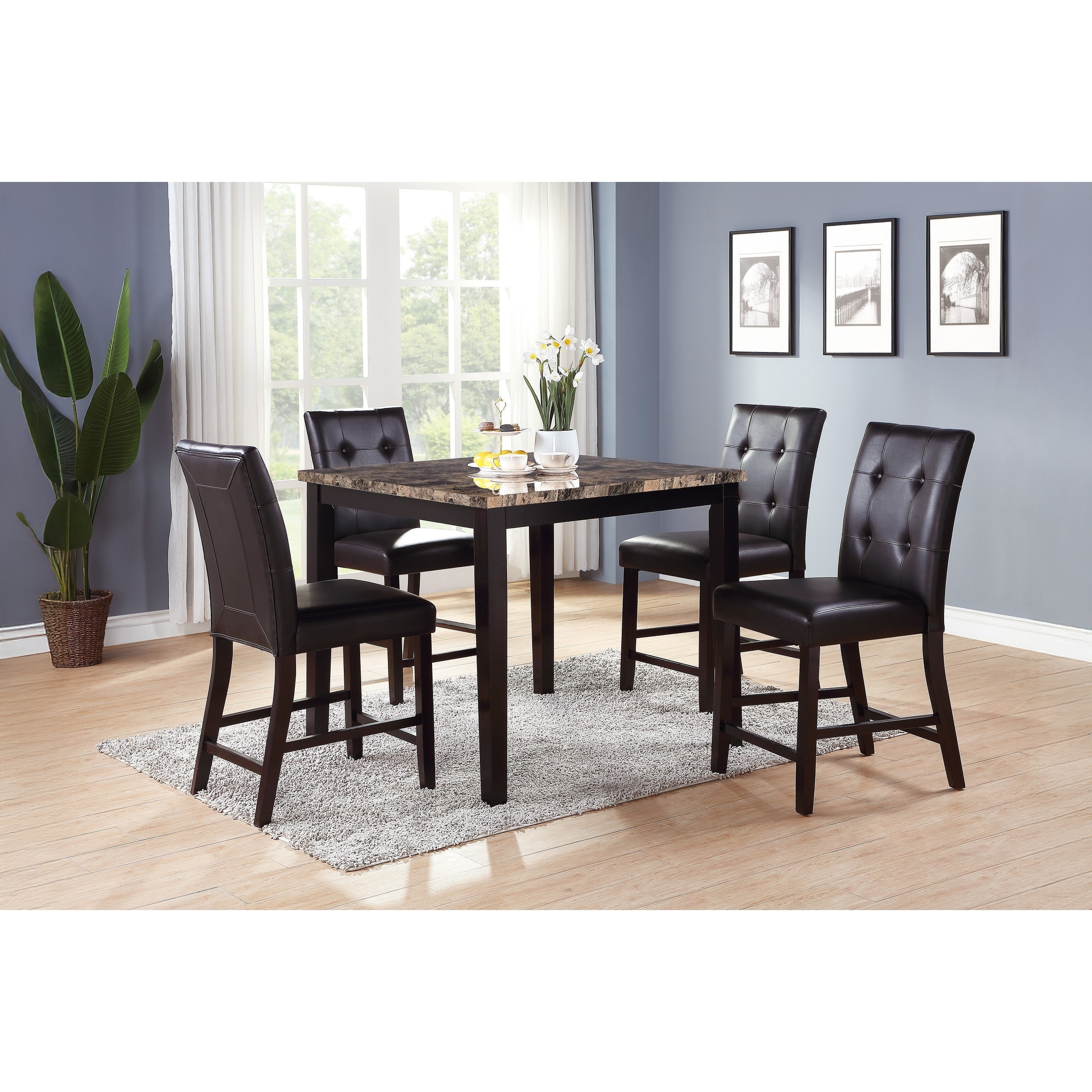 Counter Height 5pc Dining Table Set Square Faux Marble Table Espresso Finish