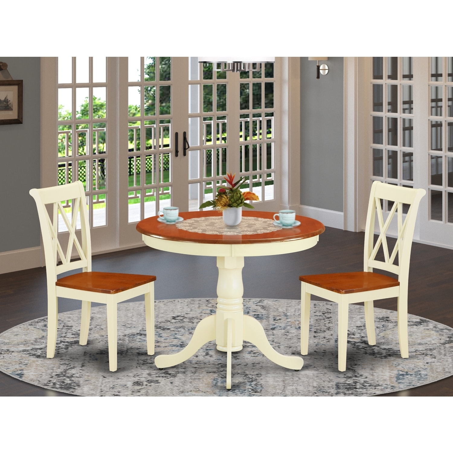 French Country 3-Piece Dining Set - Round Table & 2 Chairs - Small Kitchen Table