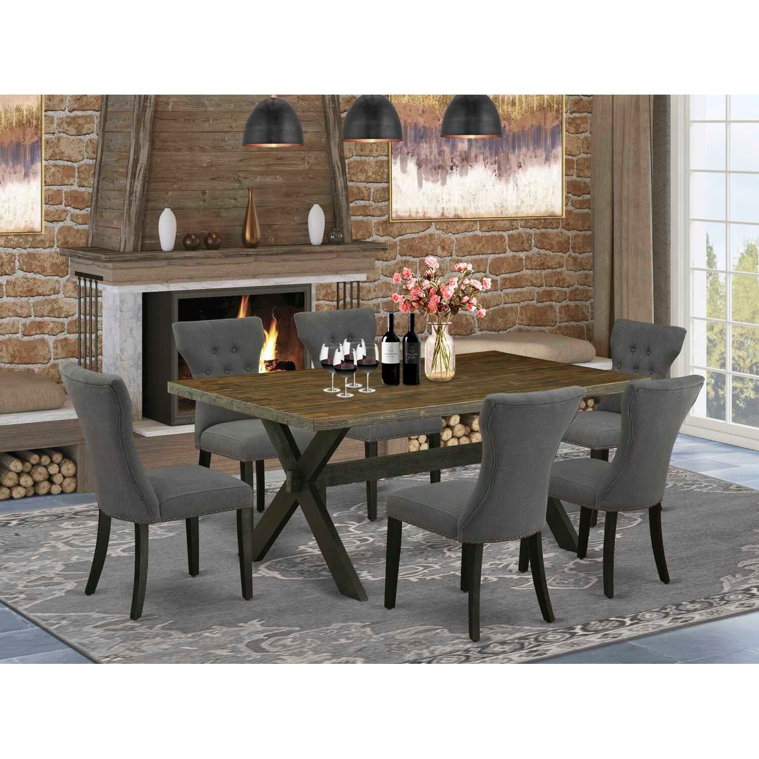 Stylish Modern X Cross Base Dining Room Table Set with Gold Dining Chairs