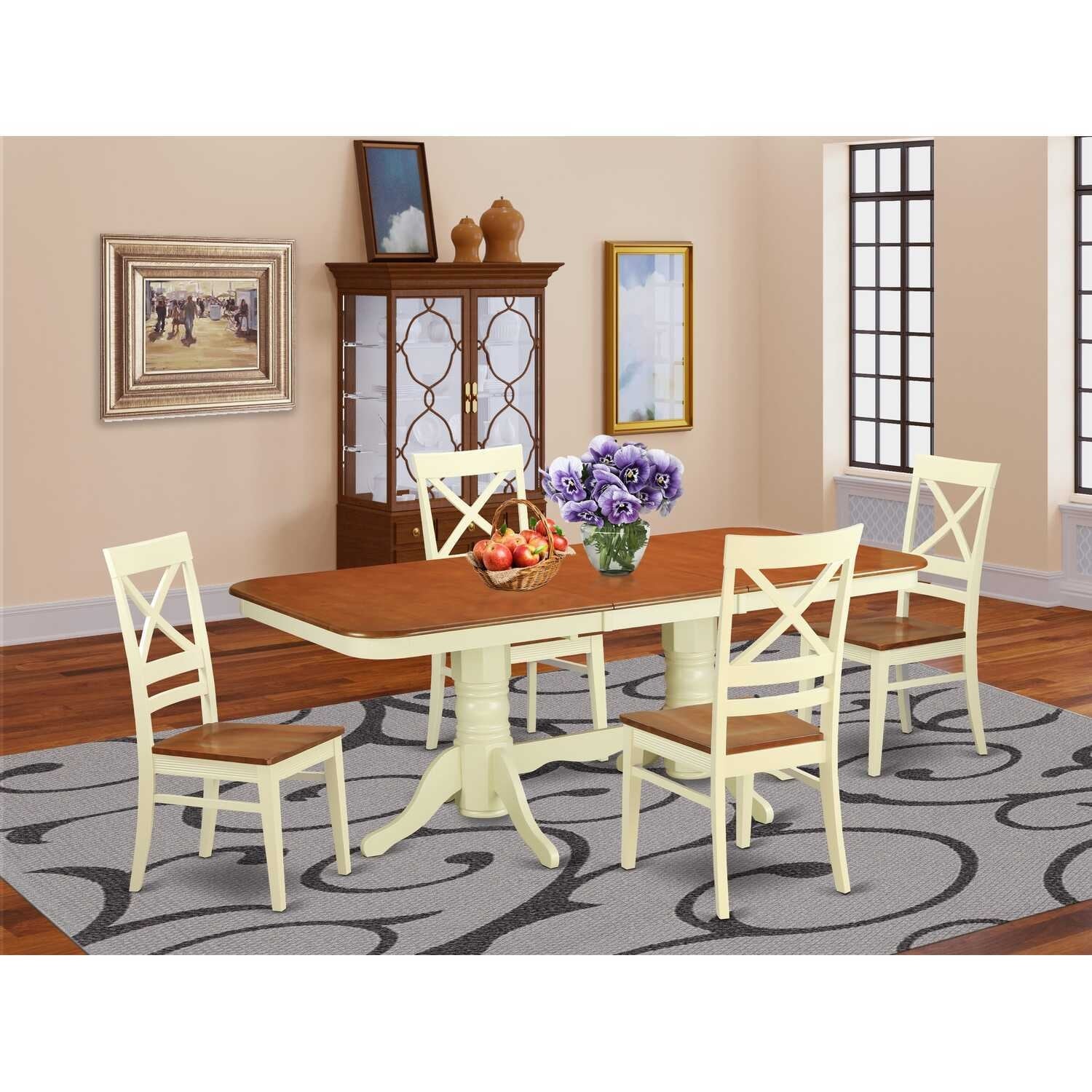 Double Art Deco Distressed Cocoa Brown/ Cotton White Transitional X-Back 7-Piece Dining Set