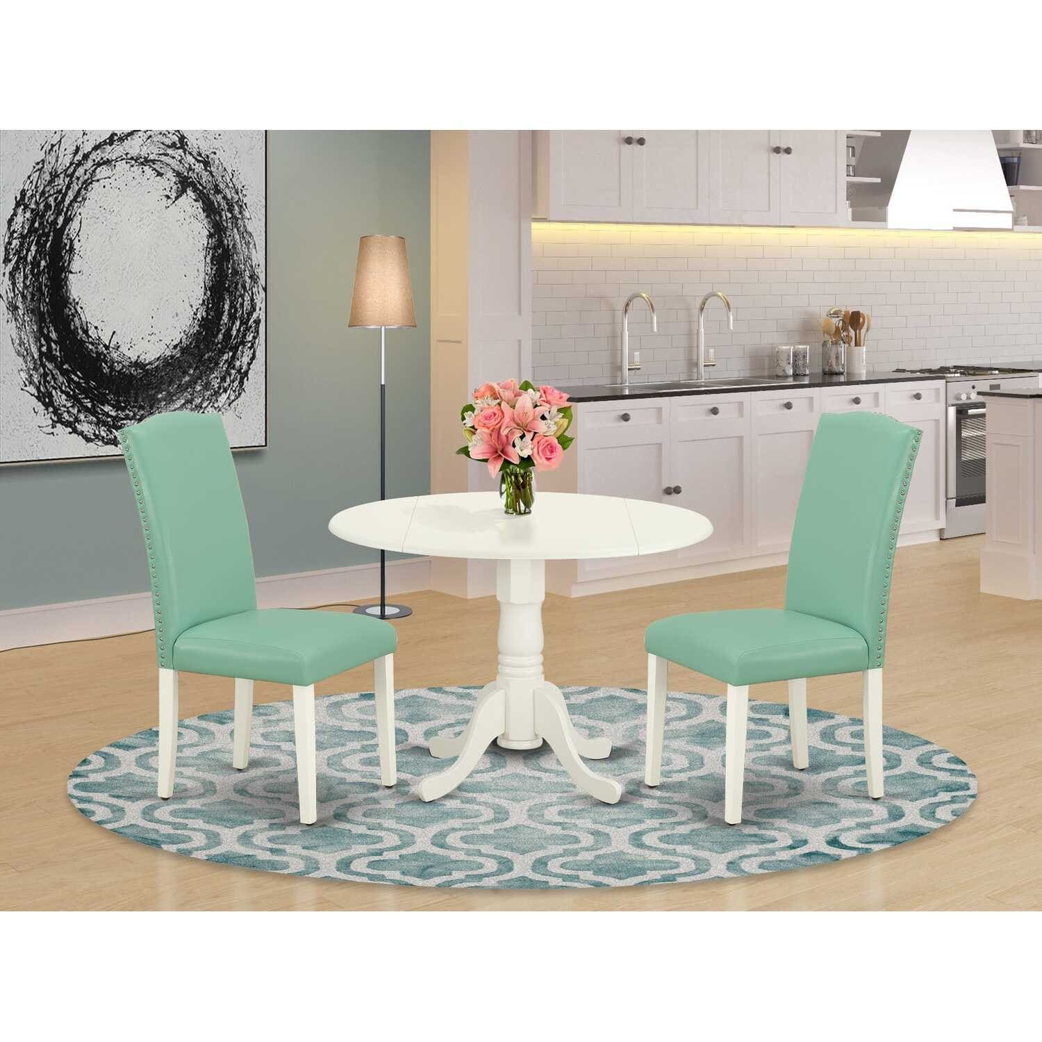 Round Kitchen Table Set 3pc 42 Inch Table w/ Drop Leaves & 2 Parsons Chairs - Modern Dining Set