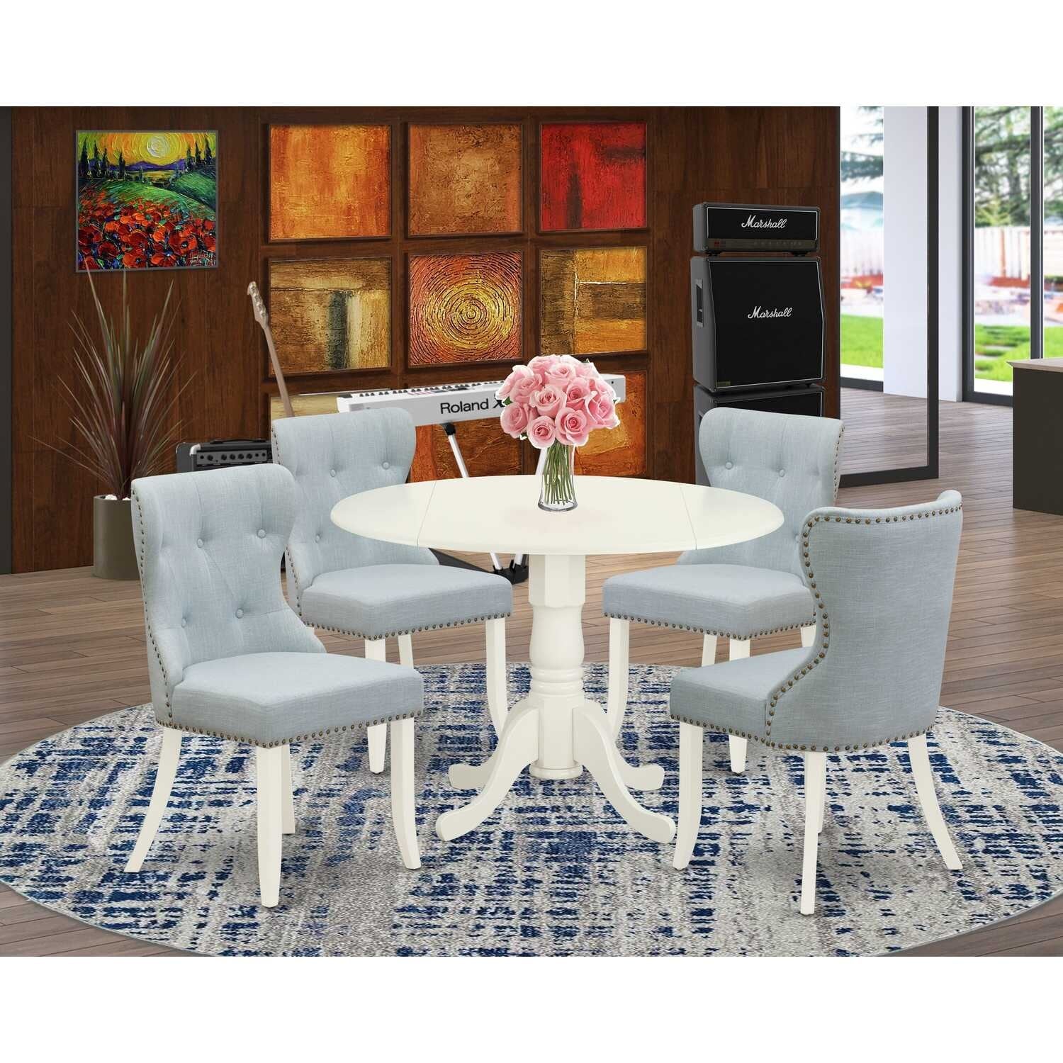 East West Furniture Kitchen Set Includes a Round Kitchen Table and Chairs, Linen White (Pieces Options)