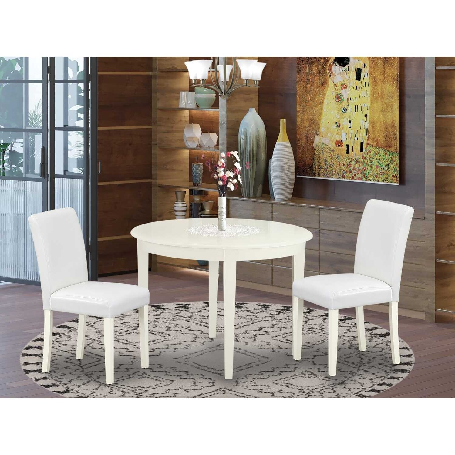 Round Dining Table Set 3pc - 42" Table & 2 Parsons Chairs - White PU Leather - Modern Elegance