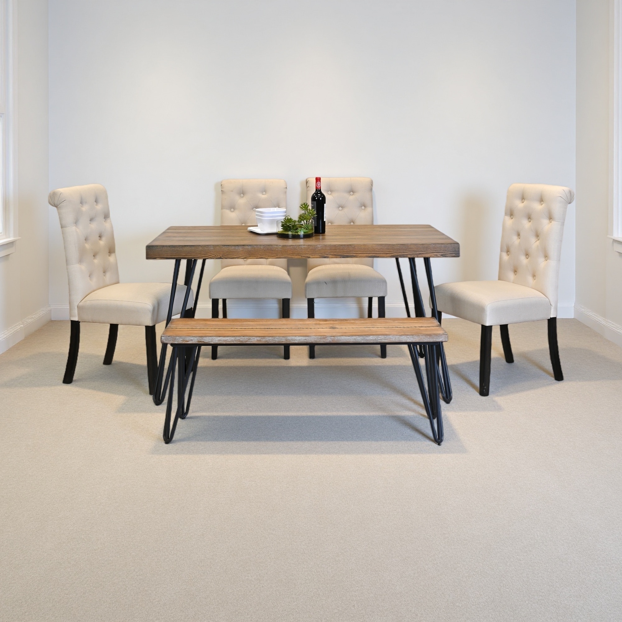Rectangle Kitchen Dining Table Set - 7Pc Table & Chair Set with Butterfly Leaf, Linen Fabric, Black Legs