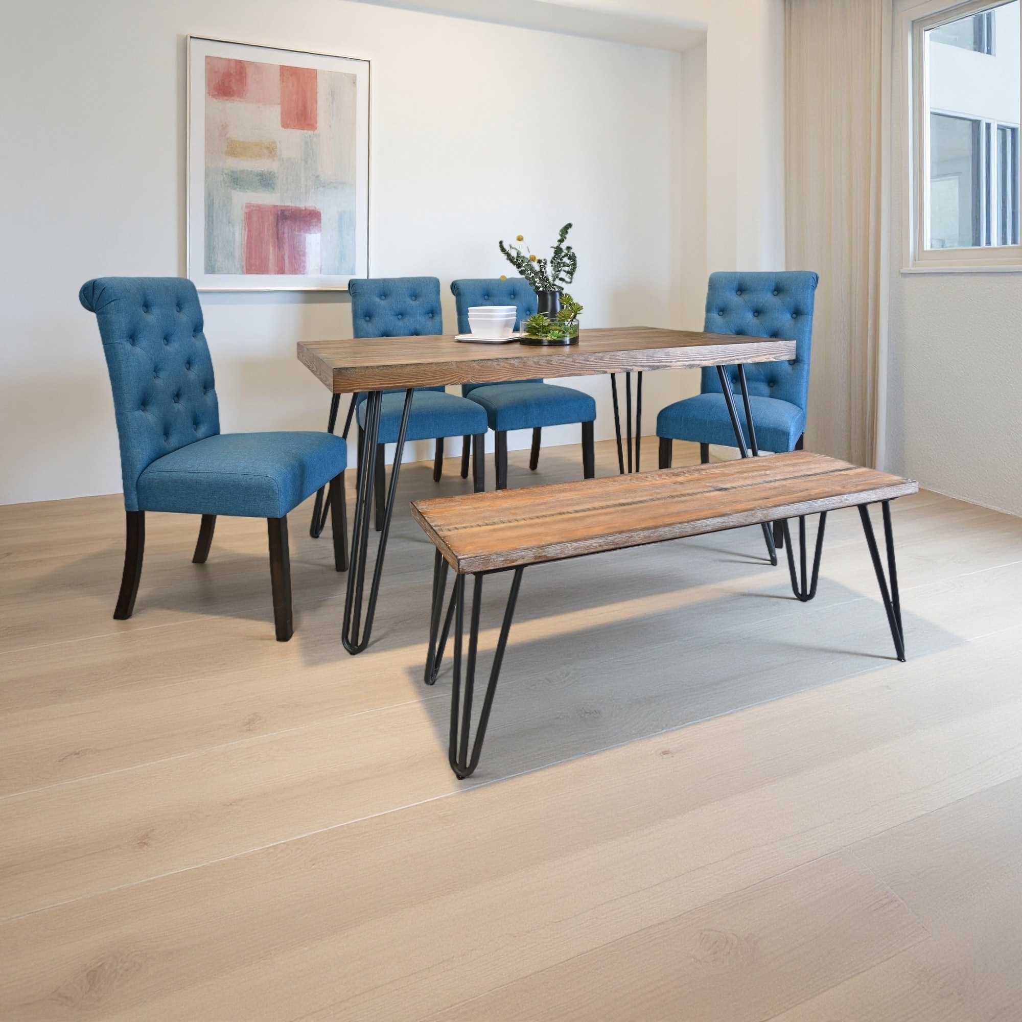 HomeStock 7-Piece Distressed Jacobean Finish Solid Wood Top Dining Table with 6 Chairs