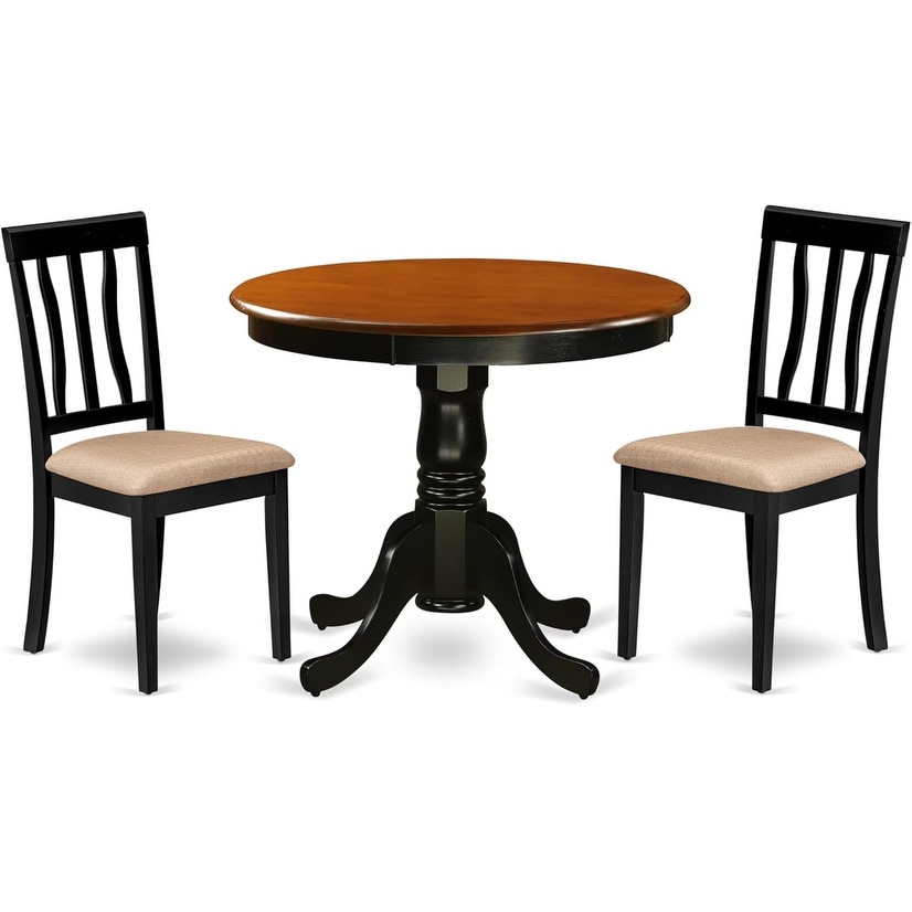 3-Piece Round Dining Table Set with 2 Fabric Chairs, 36x36 Inch, Black & Cherry