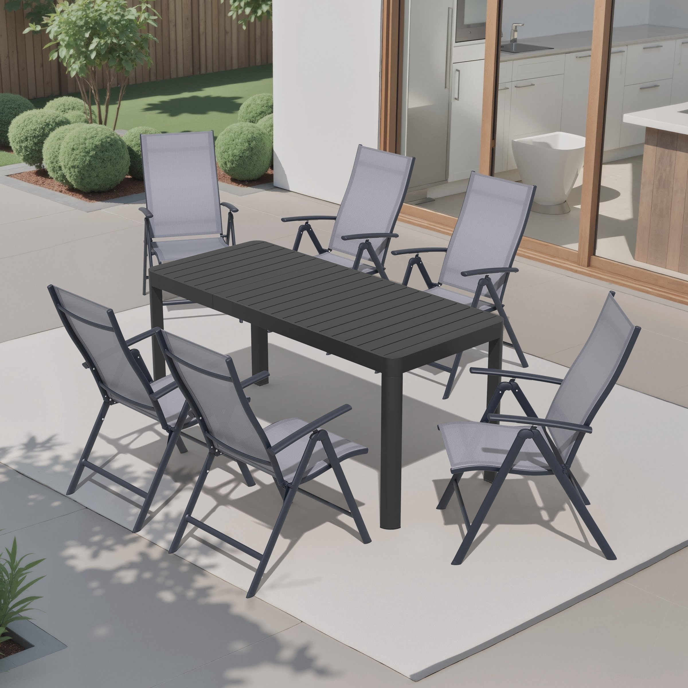 7-Piece Outdoor Patio Dining Set Expandable Rectangular Aluminum Dining Table Folding Chairs