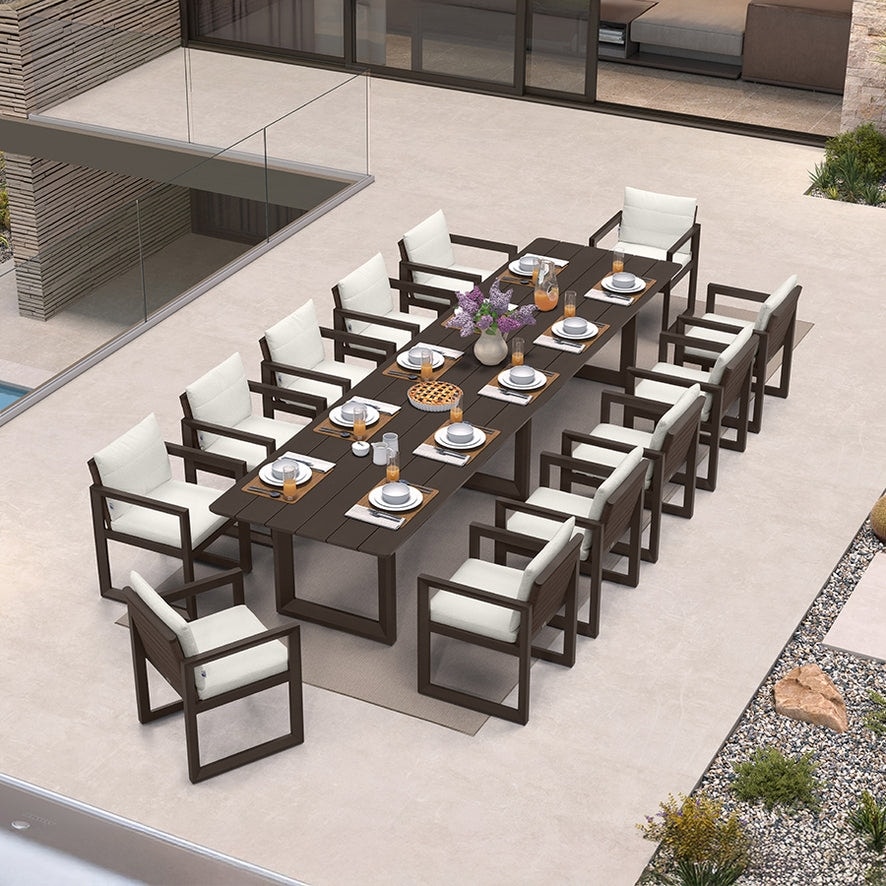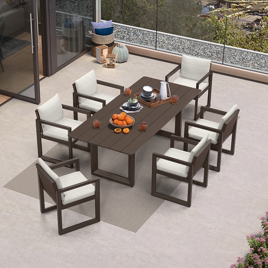 PURPLE LEAF Caesar Outdoor Dining Set Aluminum Luxury Patio Furniture with Olifen Removable Thick Cushion and Pillow-Bronze