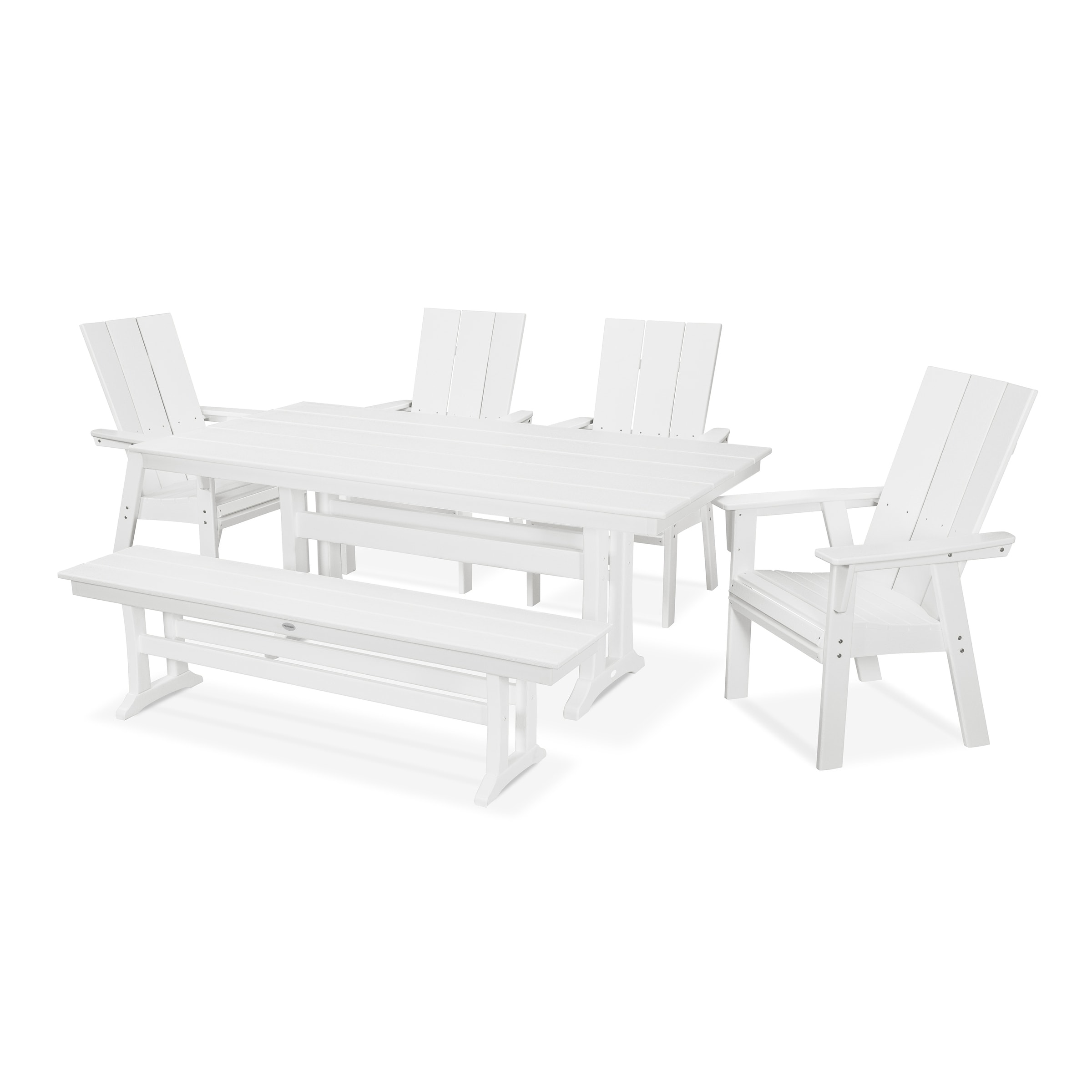 POLYWOOD Modern Adirondack 6-Piece Farmhouse Dining Set with Bench