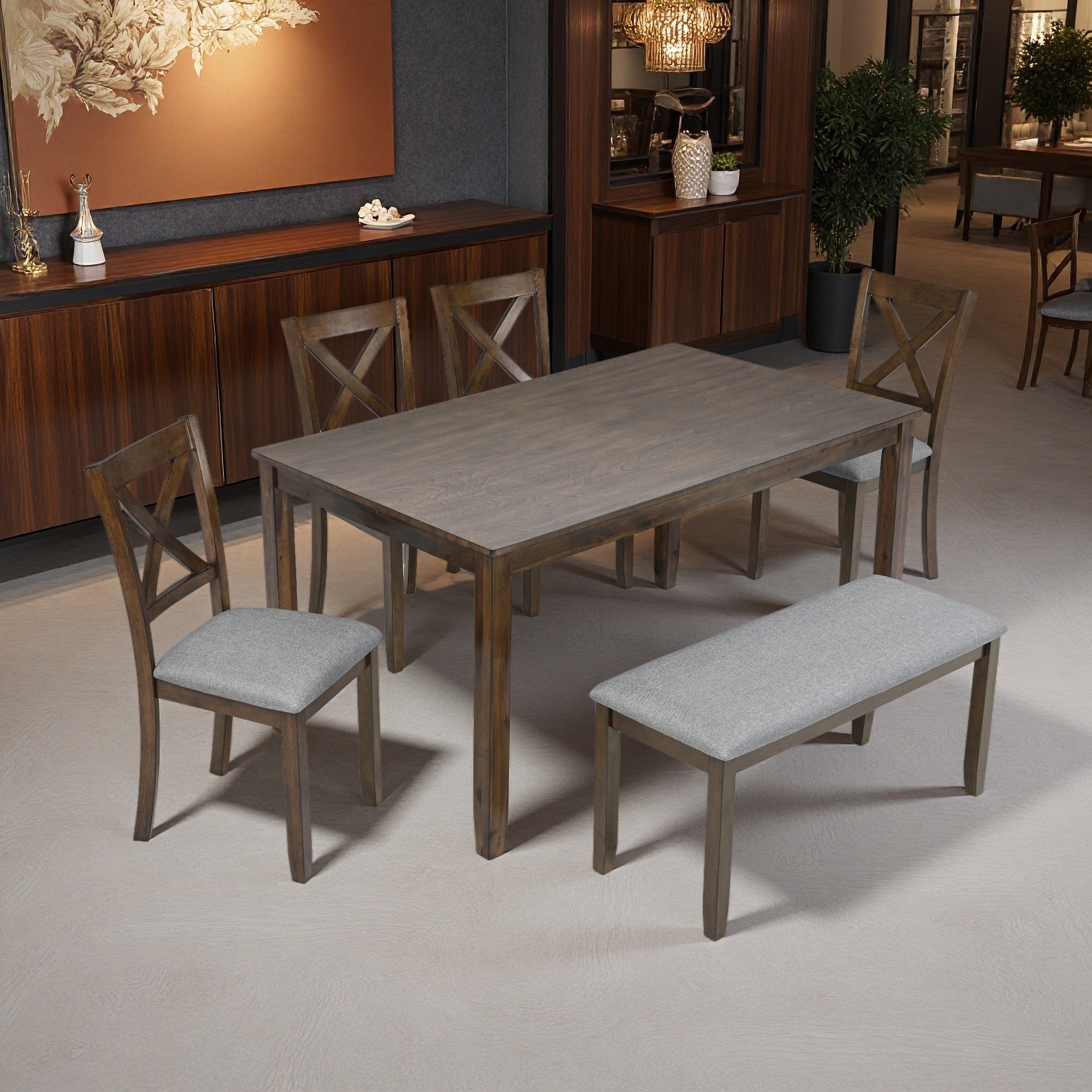 6-Piece Wooden Dining Table Set with Chairs & Bench