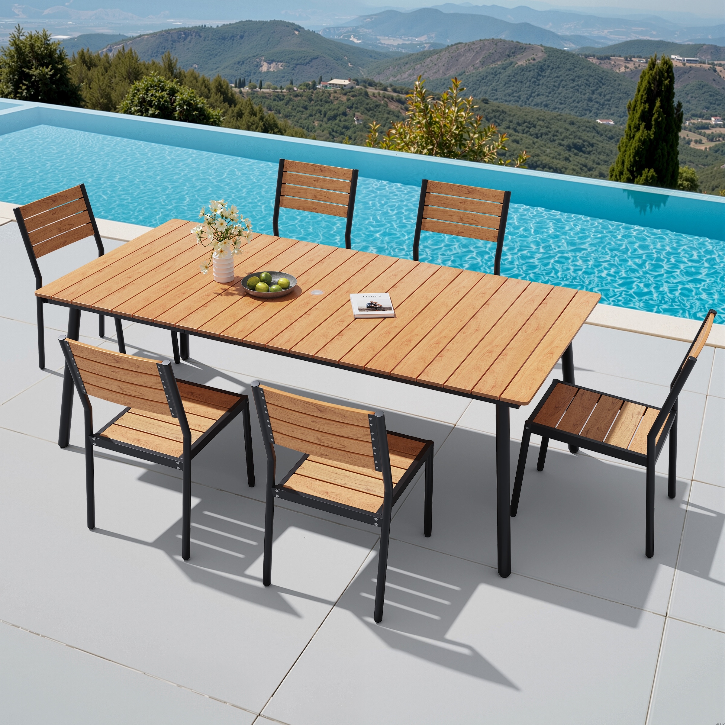 VredHom 7-Piece Outdoor Patio Rectangle Aluminum Dining Table with Chairs