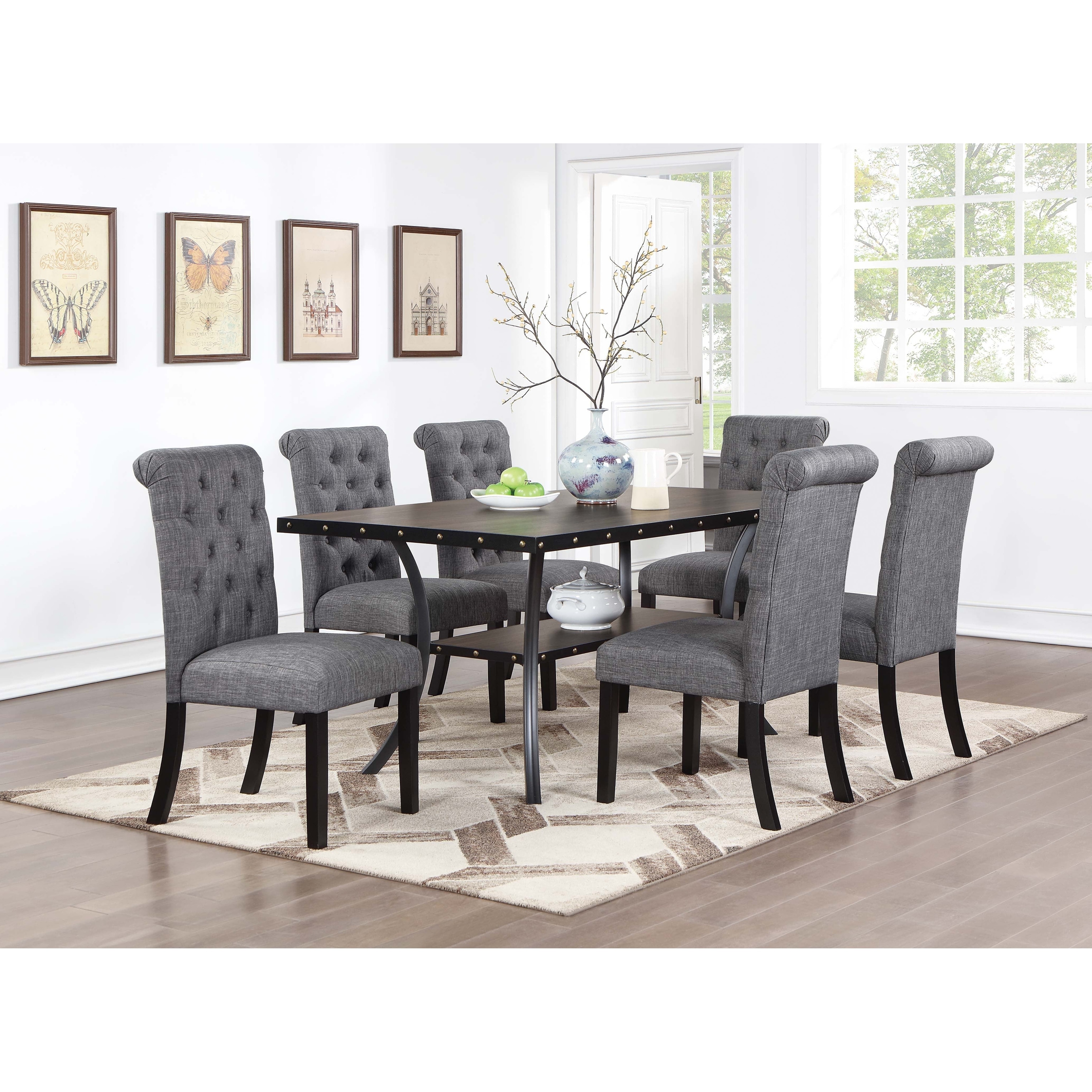 7pc Dining Table Set Rectangle Table Open Shelf Charcoal Finish