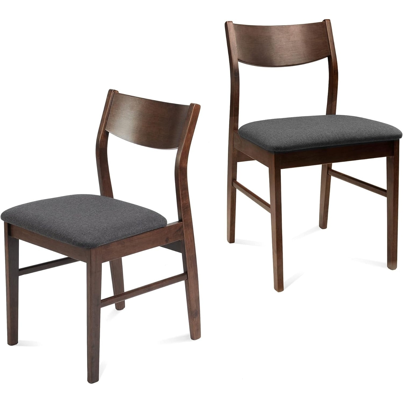 Mid-Century Farmhouse Dining Chairs Set of 2 with Upholstered Seat & Curved Backrest - Solid Wood