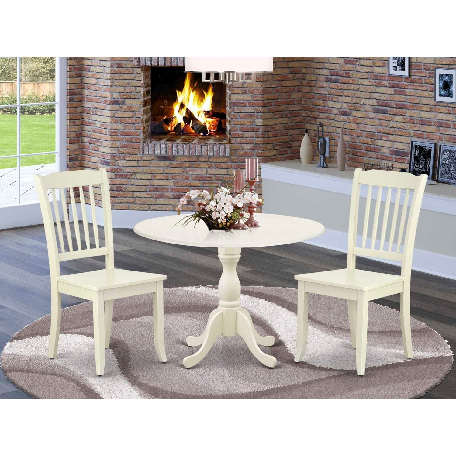 3-Piece Linen White Finish Solid Wood Top - Dining Room Set - Seats 4
