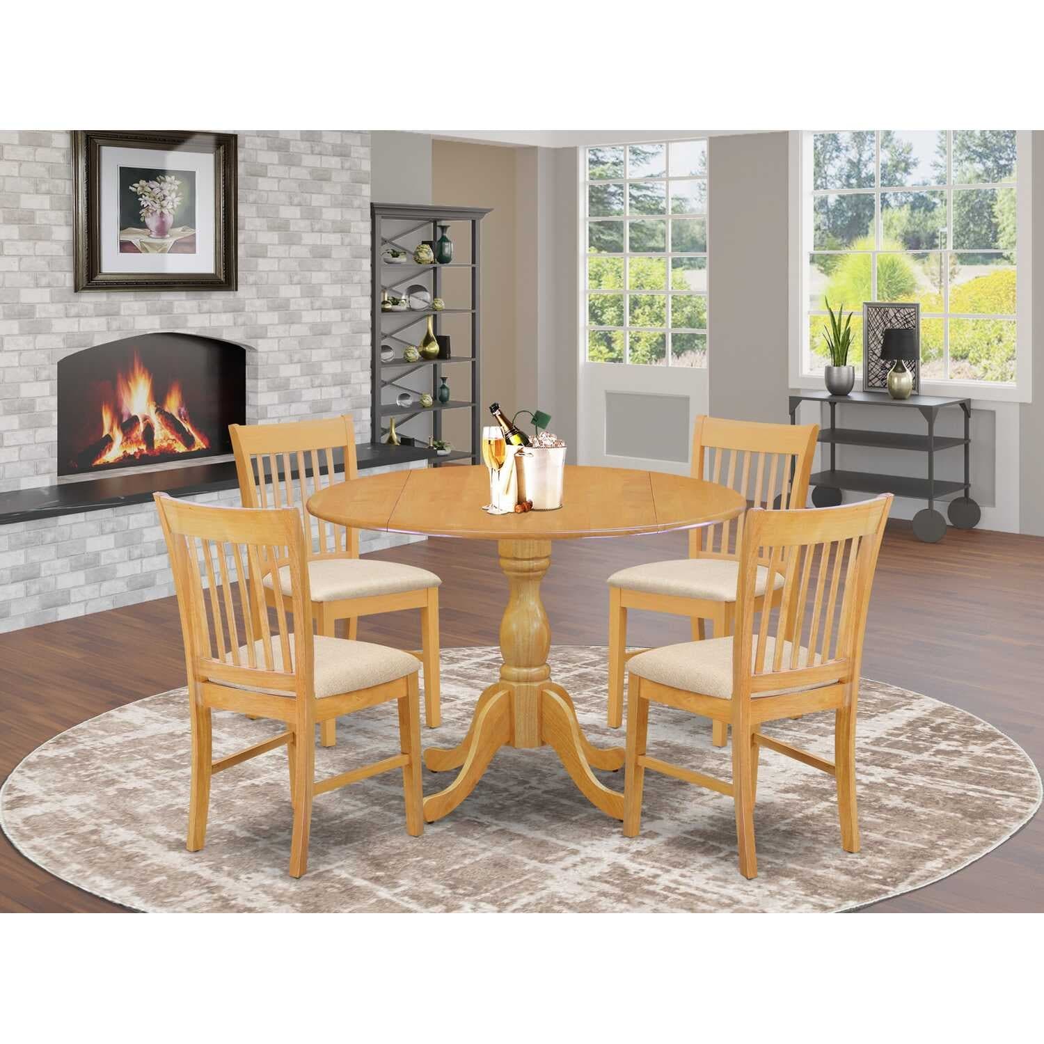 HomeStock 5-Piece Natural Oak Finish Solid Wood Top Dining table with 4 Chairs with Slat Back