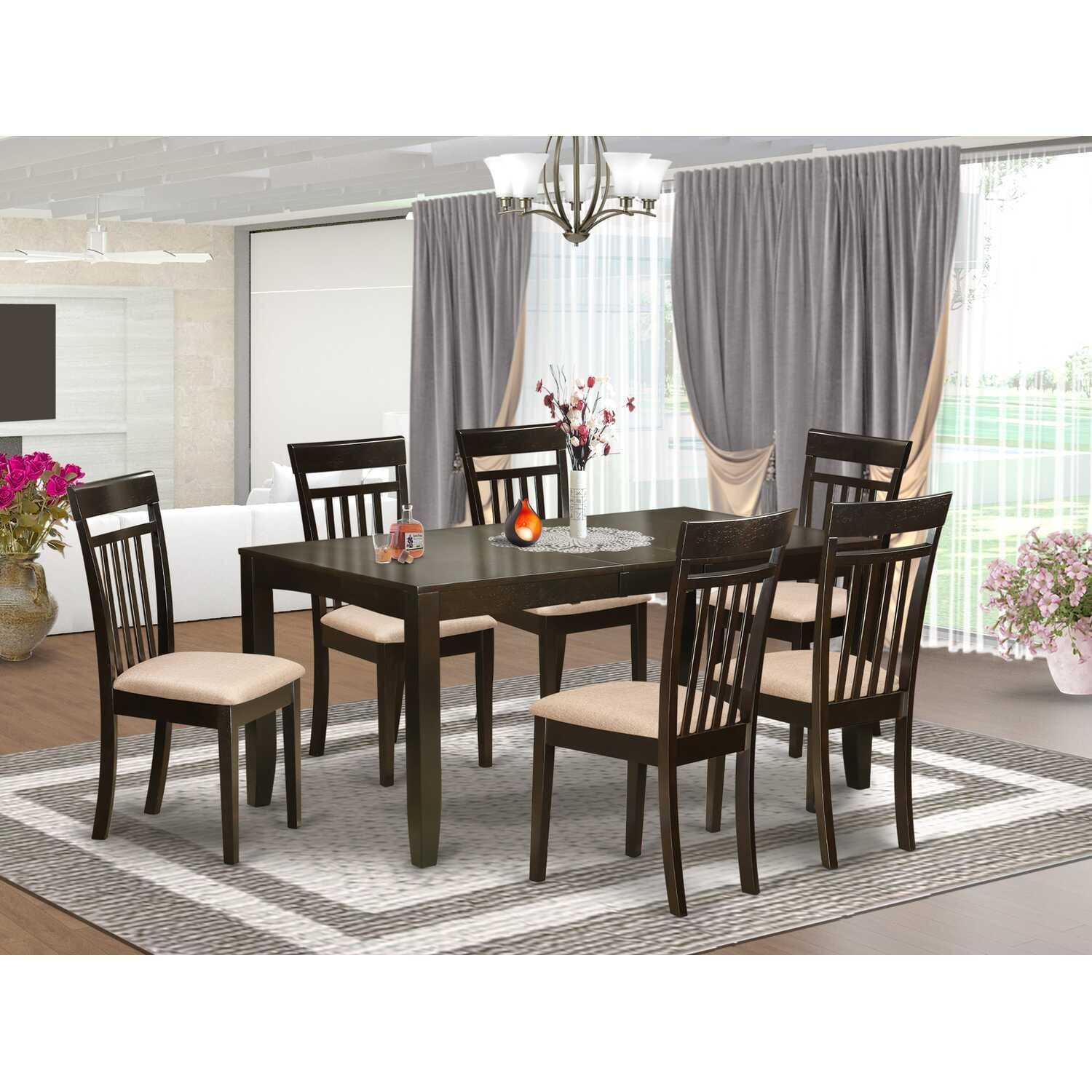Solid Wood Dinette Set - 7 Piece Table & Chair Set - Cappuccino Finish - Kitchen Dining Room Furniture