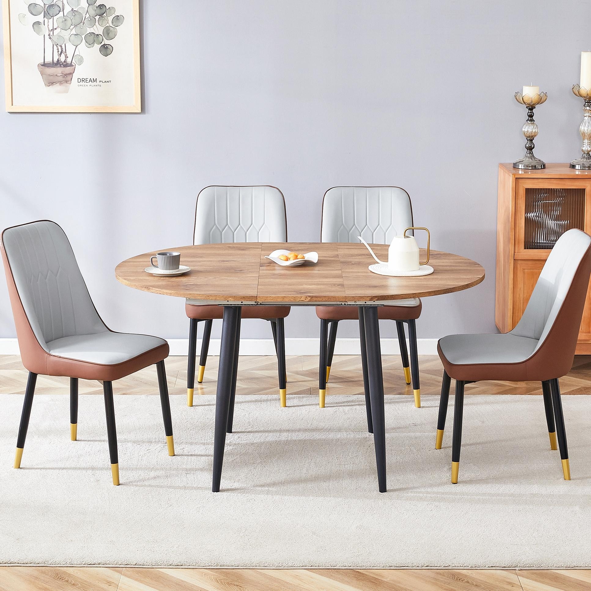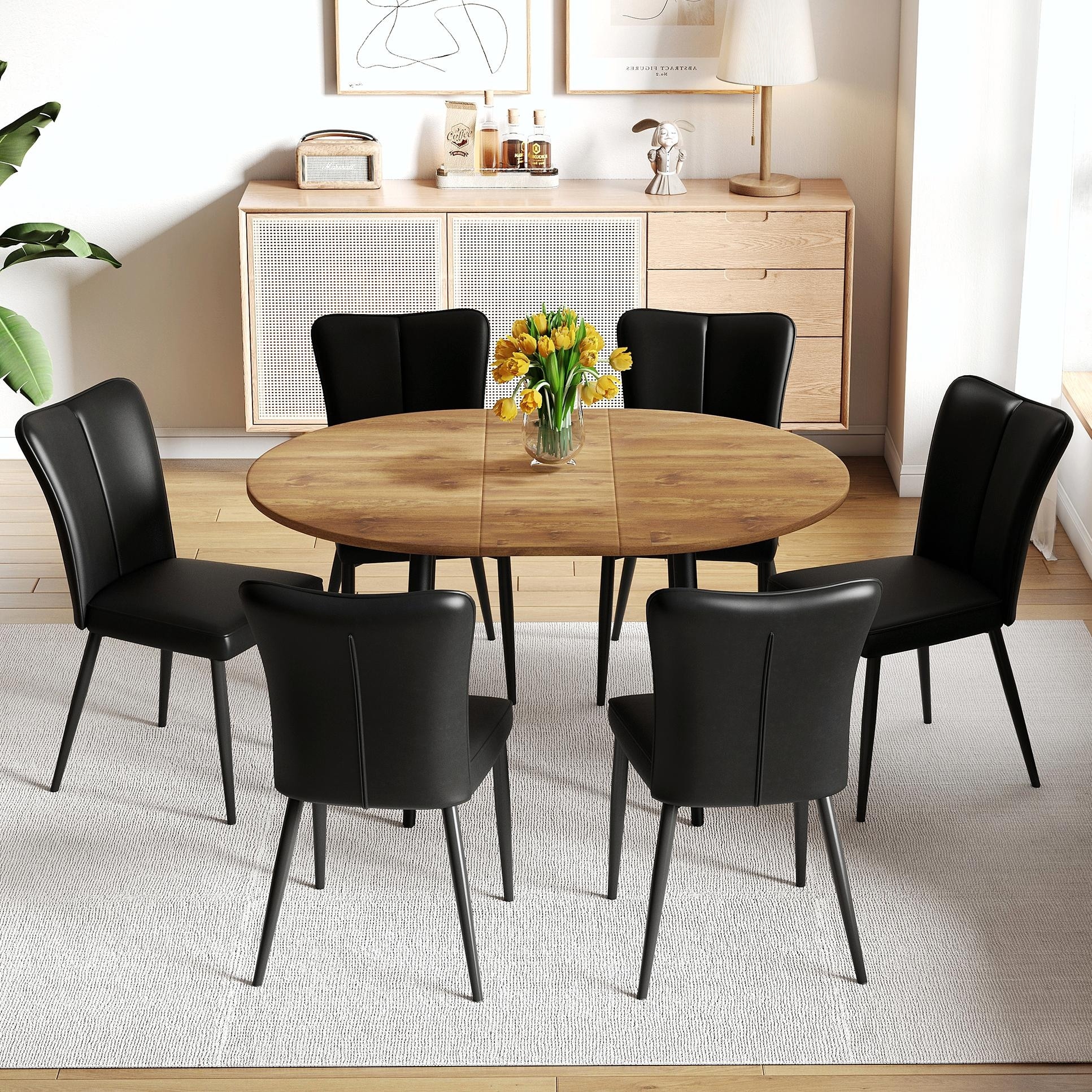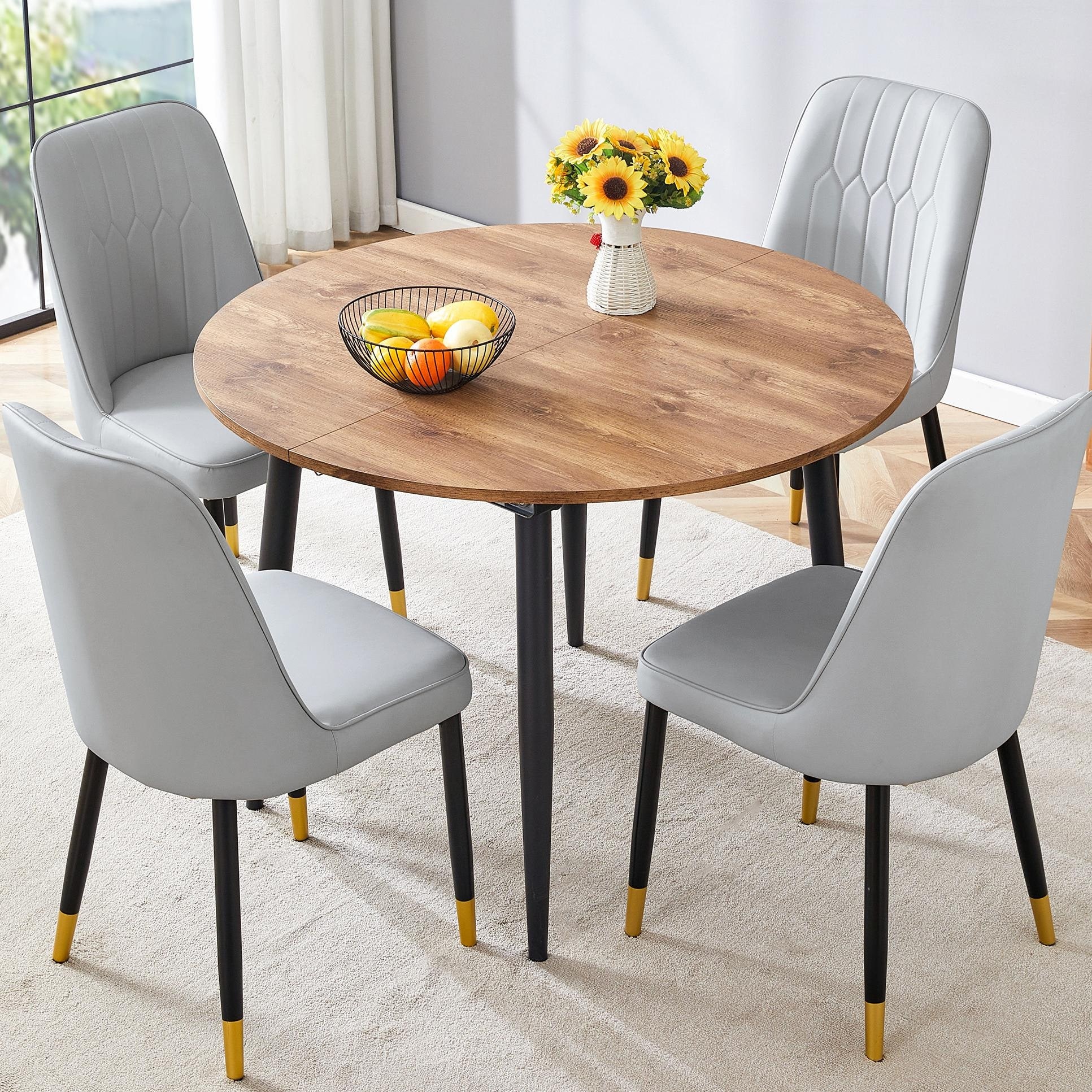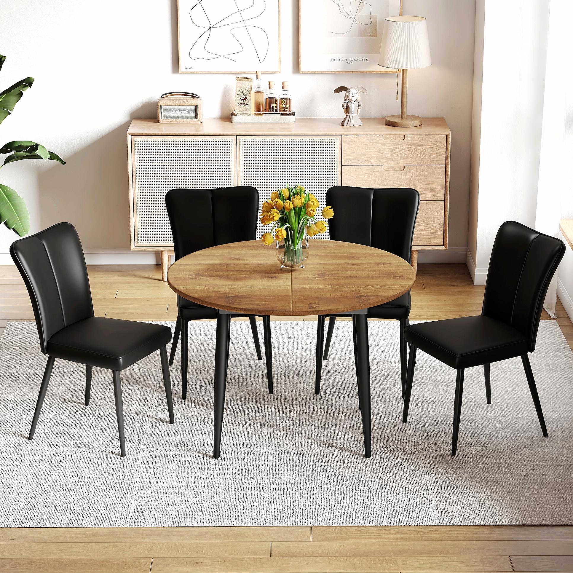 Extendable Round Dining Table Set with PU Chairs