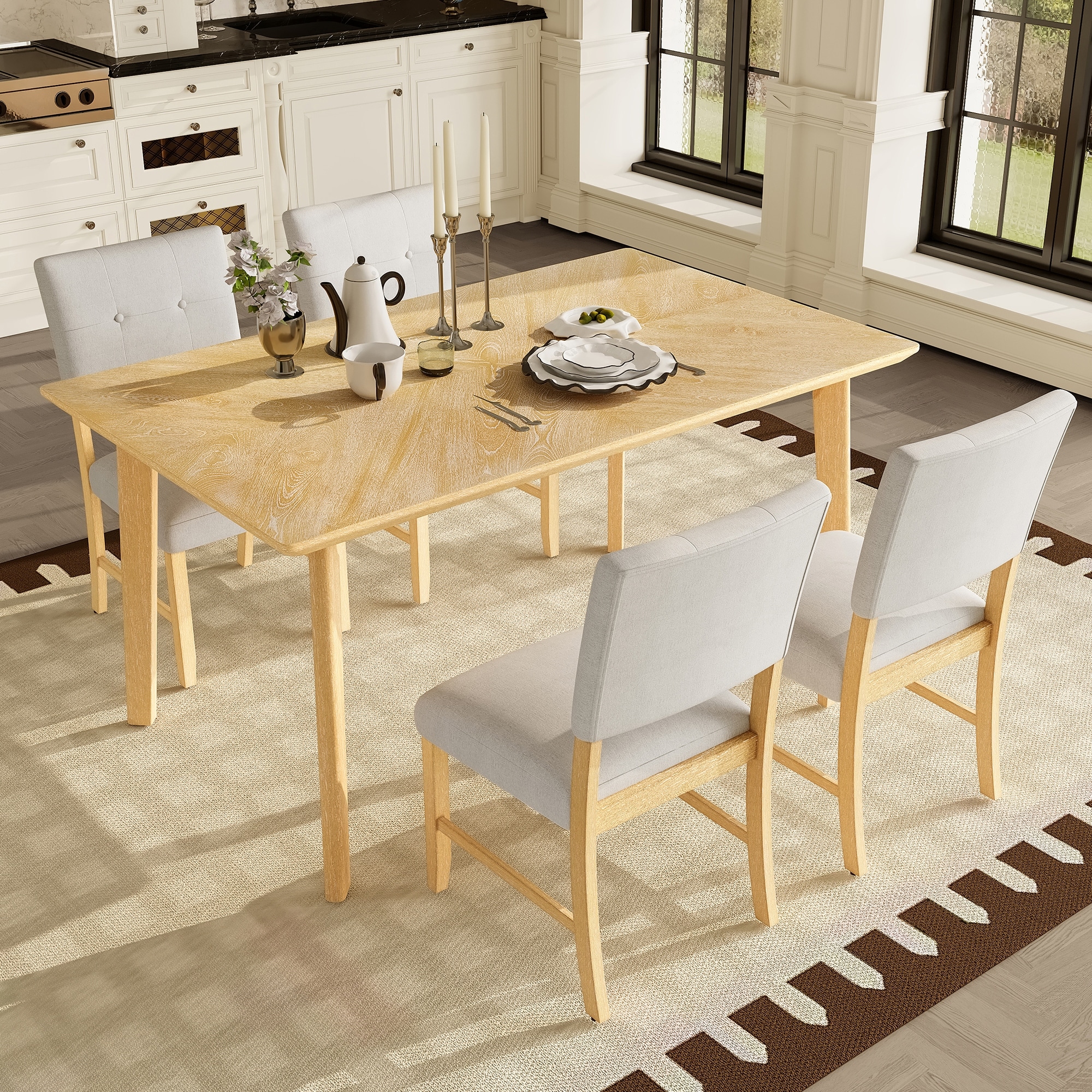 Classic 5 Piecs Kitchen Furniture Set with Rubber Wood Legs and 4 Tufted Chairs