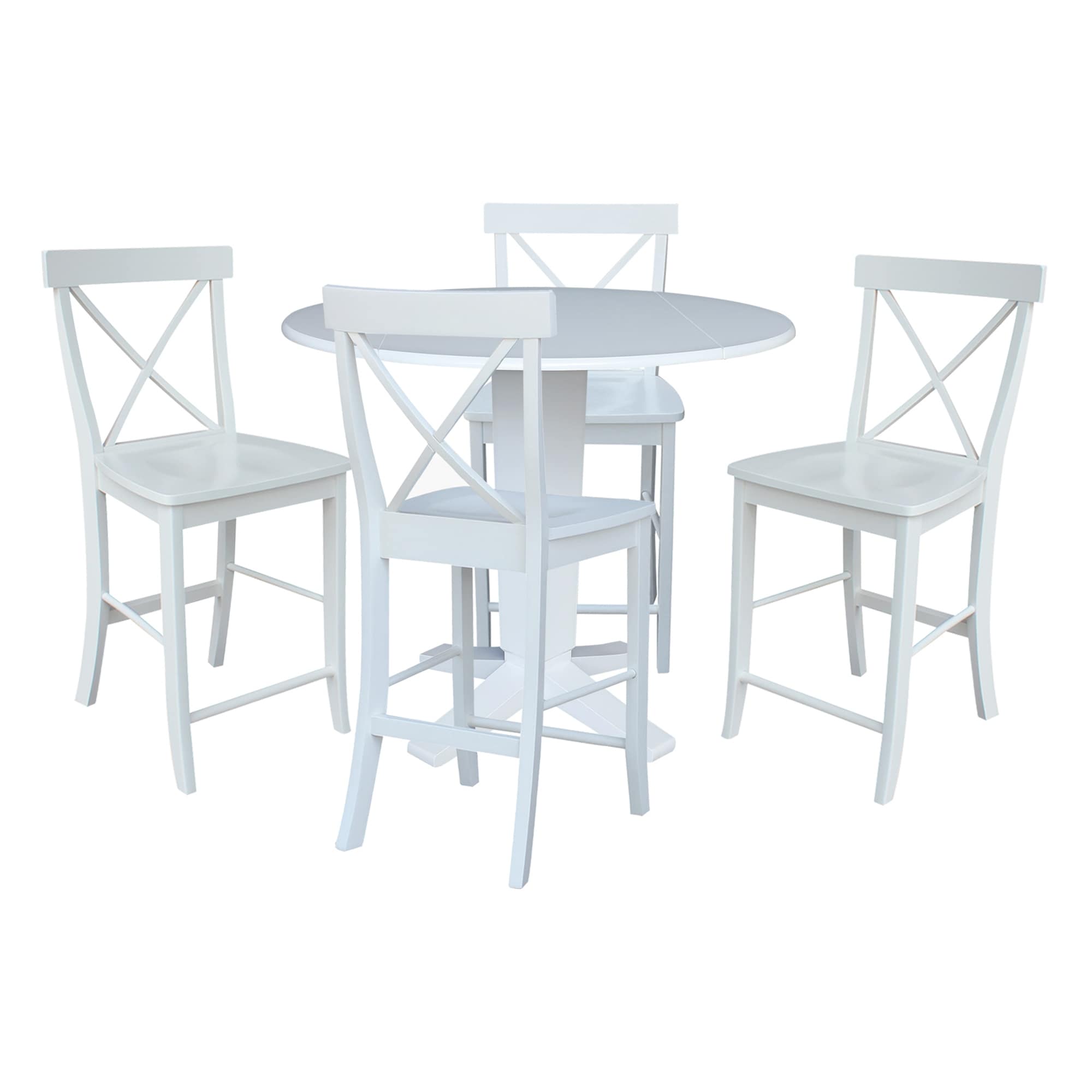42 in Round Drop Leaf Counter Height Dining Table with Stools in White
