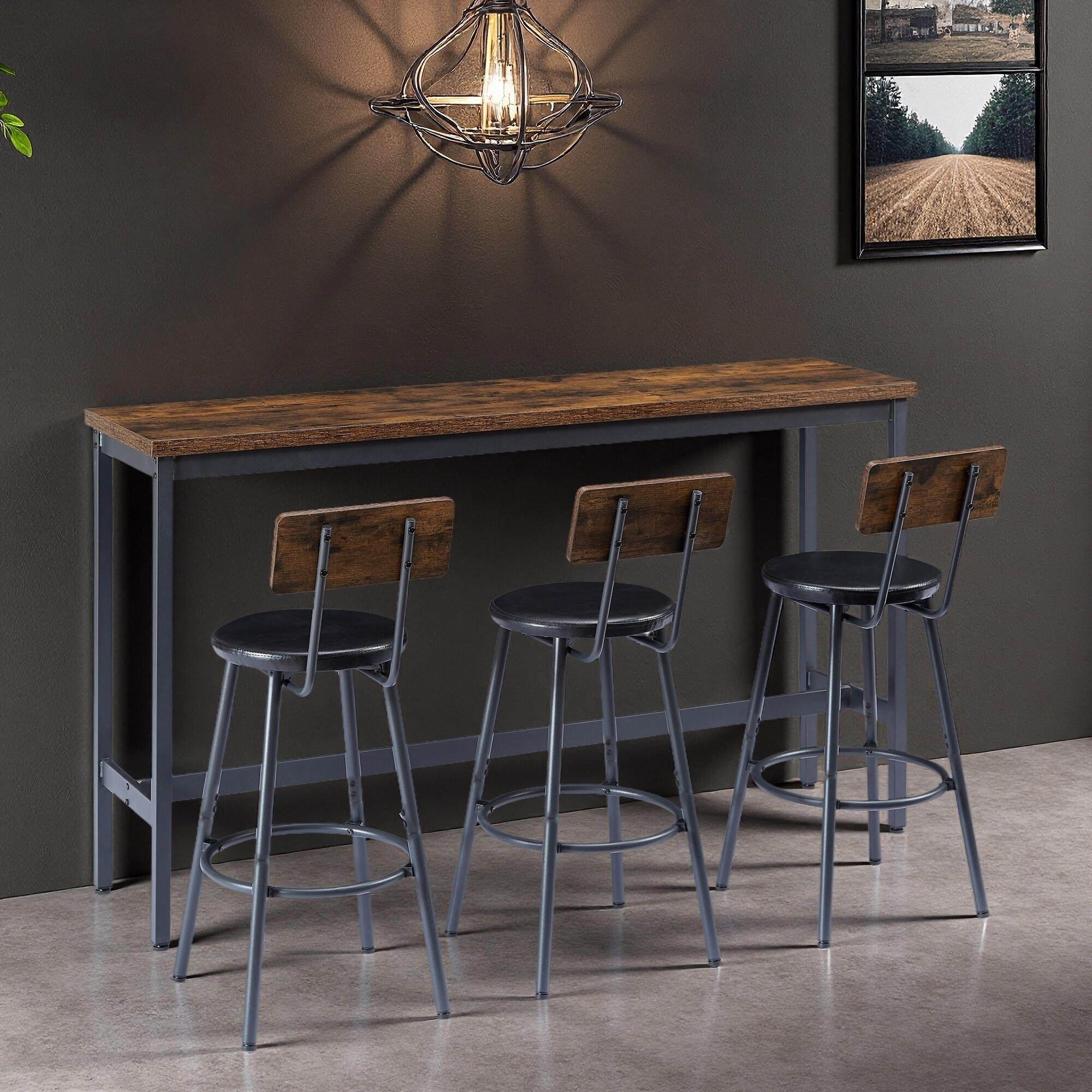 63" Long Bar Table Set with 3 PU Upholstered Bar Stools, Industrial Style for Kitchen, Living Room